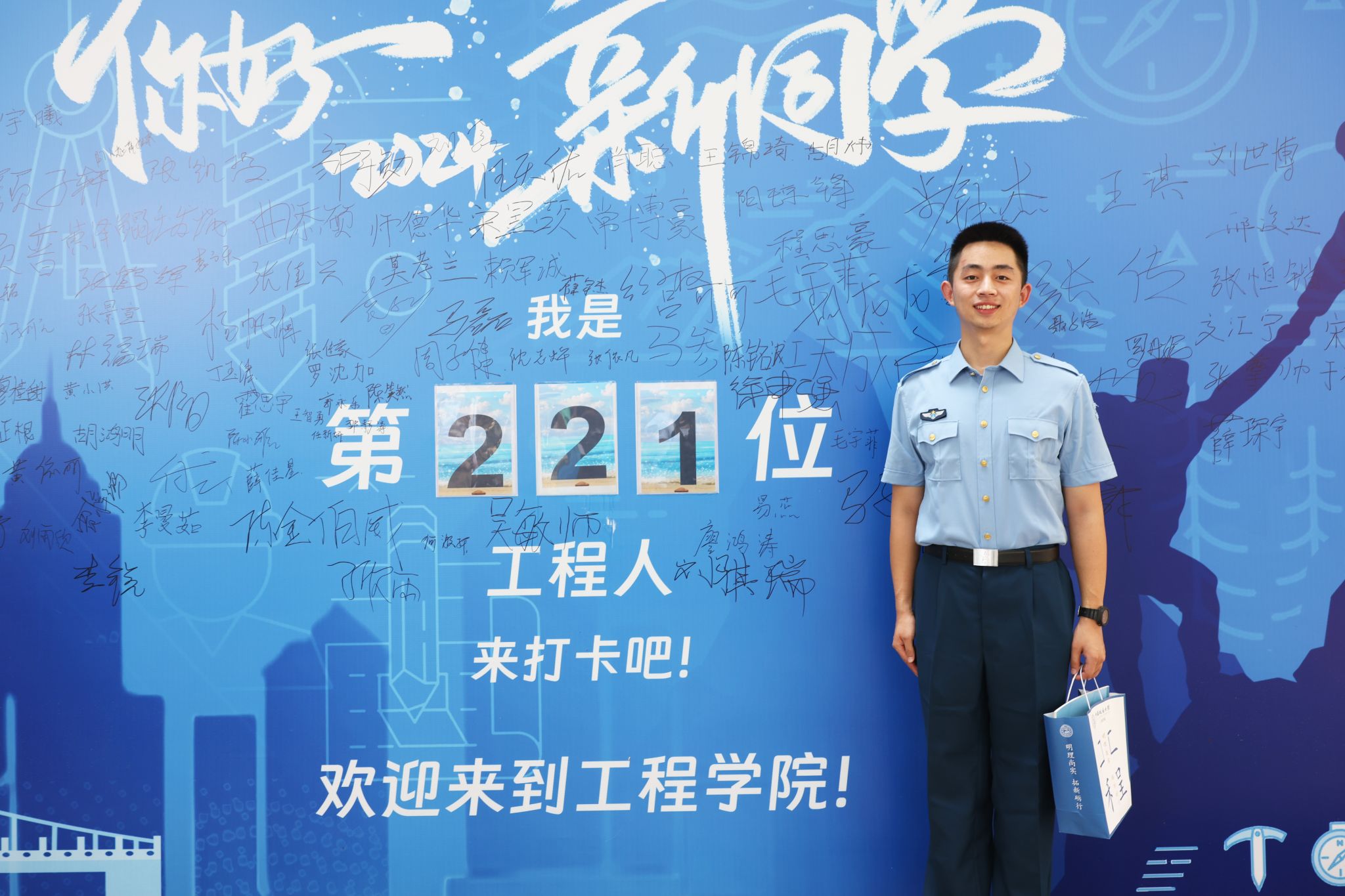 9月3日,来自湖北省云梦县的聂子浩来到工程学院报到,再次来到地大,他激动不已,2022年,还在读高一的他,参加了青少年高校科学营地大分营,被分到工程学院承办的班级,一周的研学里,他在工程学院听过大师报告,搭过竹桥,做过液氮酸奶……让他在心底埋下一定要考入地大的种子。“那是我第一次踏入地大校园,学校深厚的历史底蕴,先进的科技氛围,蓬勃的青春活力,优美的校园风光深深吸引住我。”两年后的今天,他实现了自己的梦想,成功考入地大,成为工程学院地质工程专业的一名新生,“我期望以后能在地大学习专业知识,提高综合素质,报效祖国!”