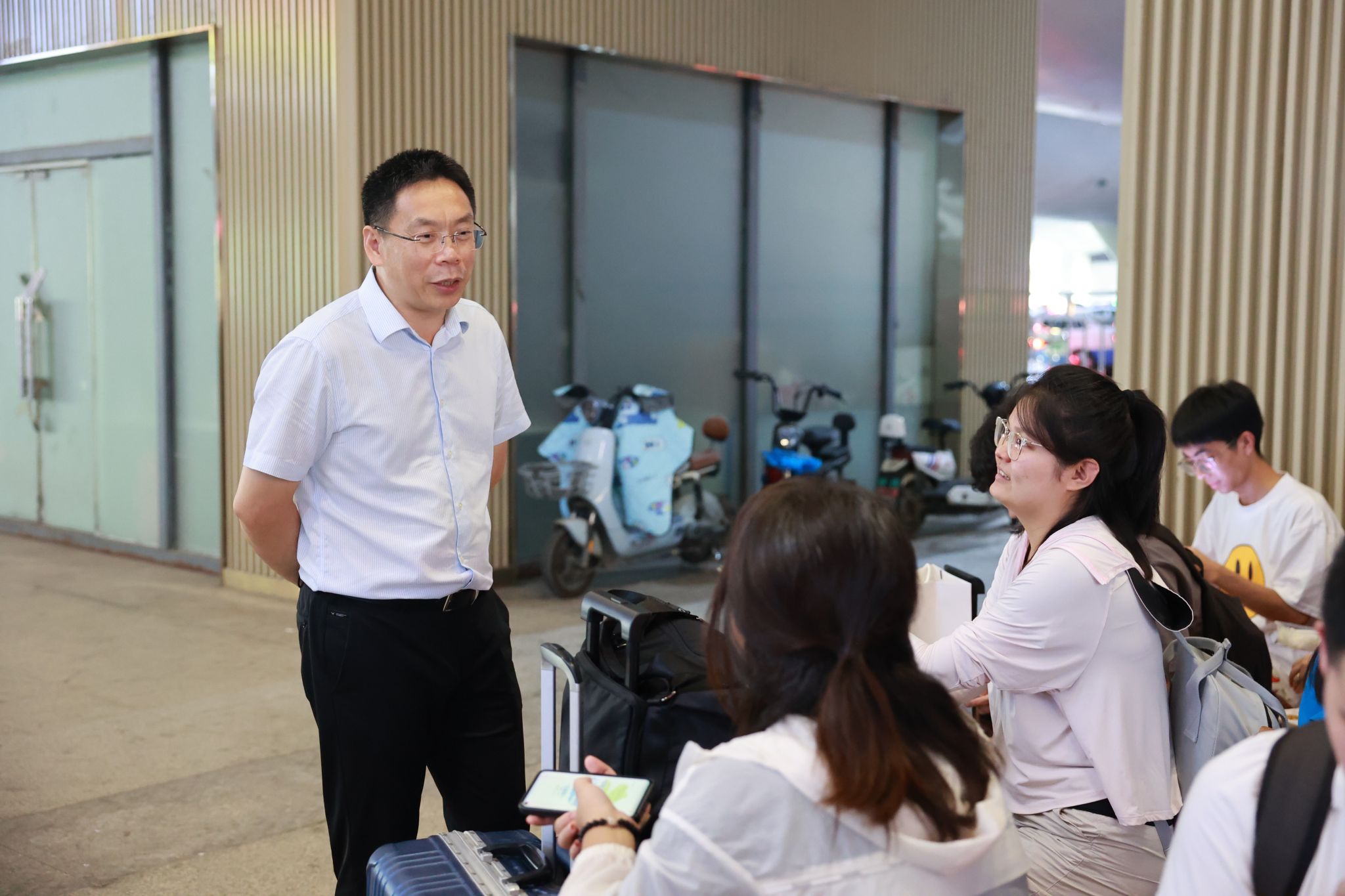 为了迎接新生们的到来,9月2日至3日,约200名党员教师志愿者、新入职教师志愿者,与学生志愿者一同来到武汉三大火车站、天河机场,为新生们提供接站服务,有序引导、搬运行李、耐心解答,一切井然有序,一双双热情的手,温暖着新生及家长们。校党委副书记王甫,党委常委、组织部部长陈文武带队到迎新点慰问志愿者。