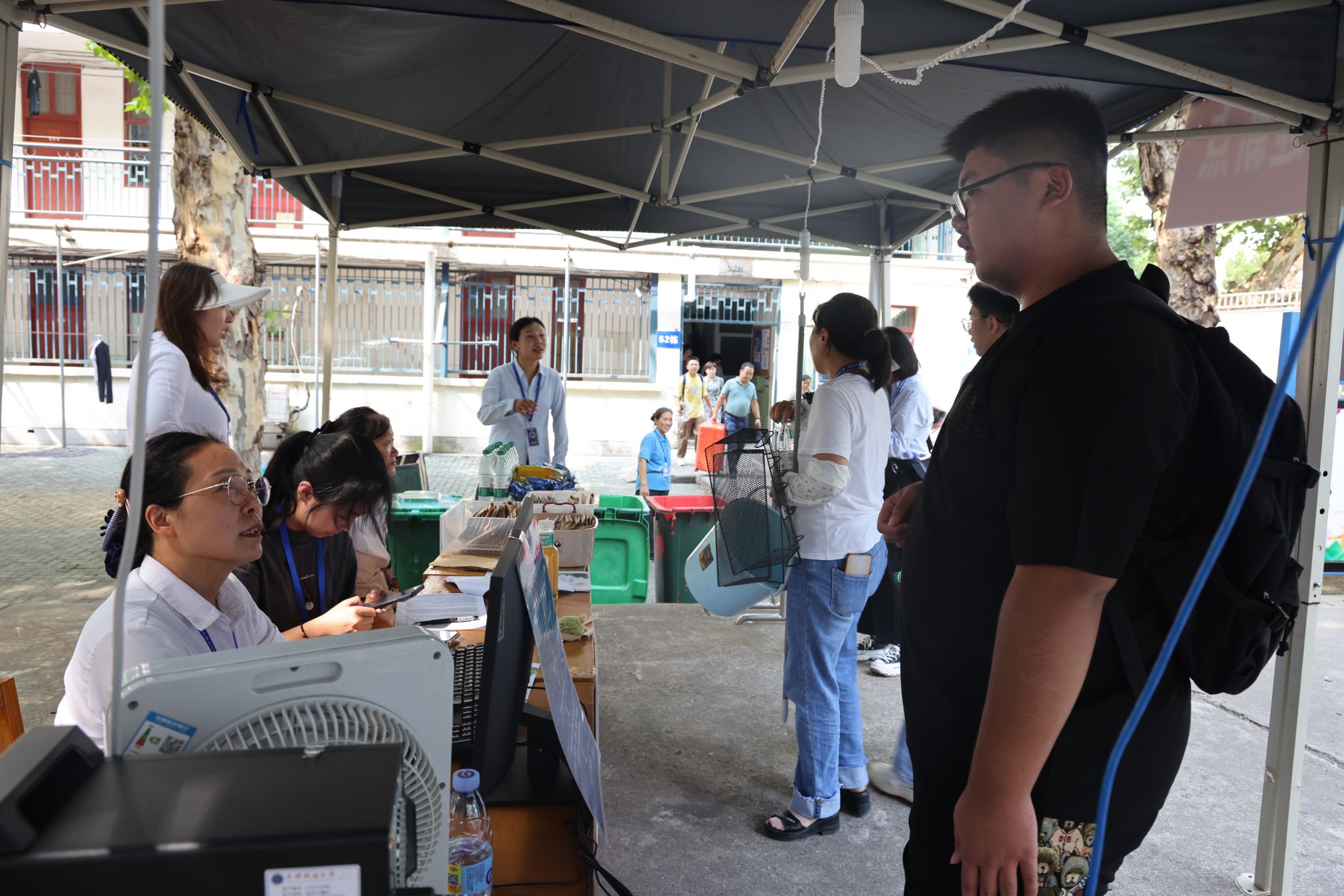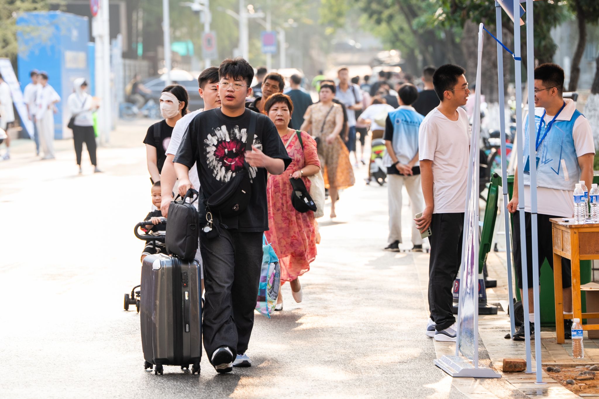 校园里,学生志愿者、后勤、保卫工作人员,为萌新们提供周到服务。大家不辞辛苦指挥交通、搬运行李,引导新生办入学手续、办理入住,带着大家熟悉校园的角落。