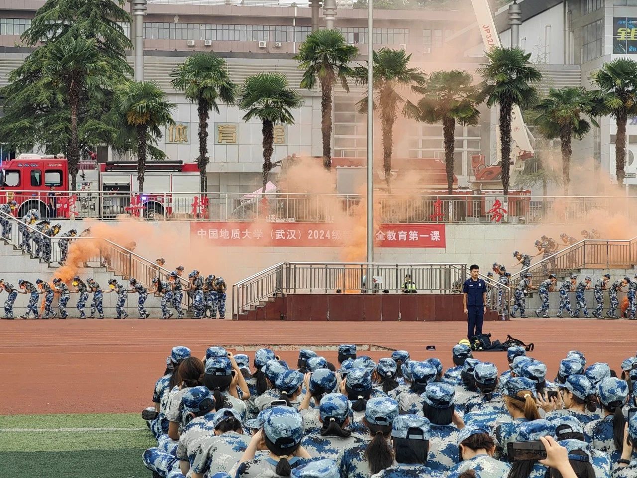 军训期间,本科生院联合安全保卫部组织开展安全教育第一课,新生同学在现场观摩高空灭火救援、体验模拟火场逃生、学习消防服穿戴和灭火器灭火等。军训结束后,安全保卫部邀请武汉市公安局开展法治宣讲活动,本次活动作为新生入学教育活动的延伸,以案说法,为构建平安校园奠定坚实基础。