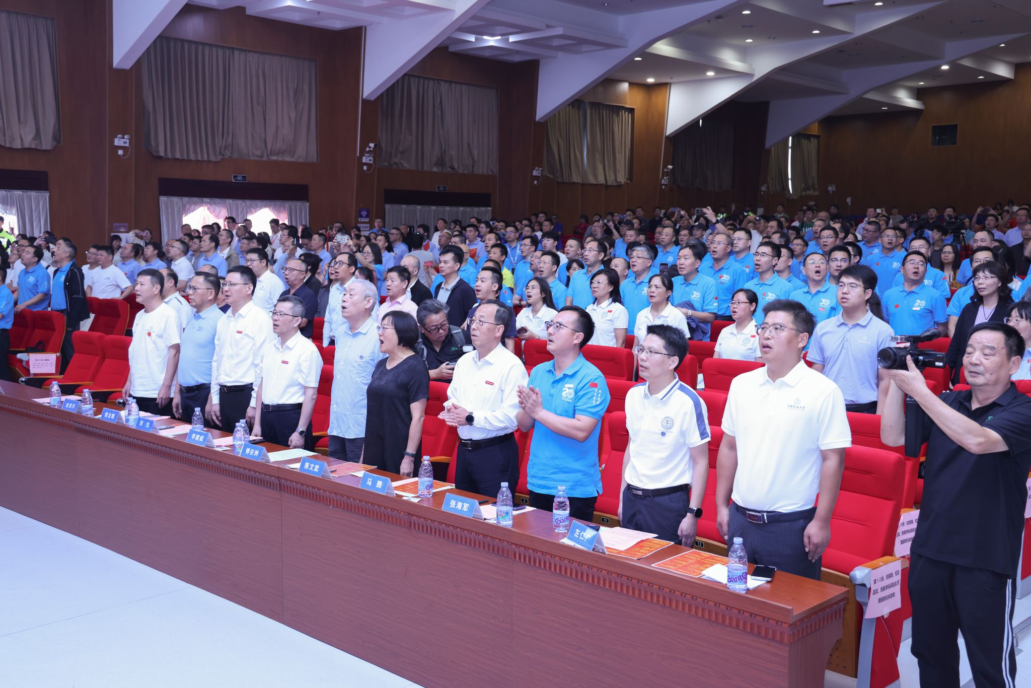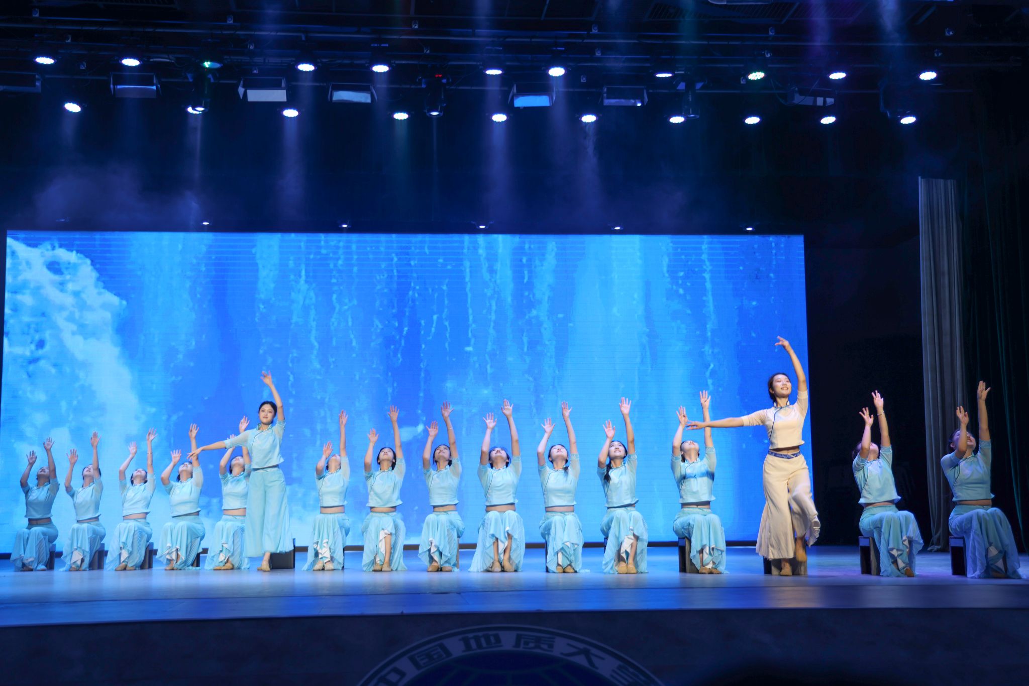 全体人员在艺术与传媒学院余磊老师指挥下齐唱校歌《勘探队员之歌》。