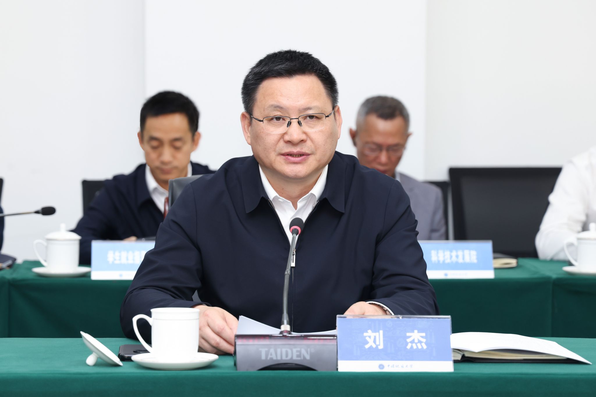 刘杰代表学校对薛斌一行表示欢迎,向兵团长久以来对学校事业发展的关心支持表示感谢,并介绍了学校的基本情况。他表示,新疆在党和国家事业发展中具有重要的战略地位,拥有着干事创业的广阔天地,高质量完成对口支援工作,全面深化与兵团在教育科技人才领域的合作,不仅是党中央、教育部党组交付学校的光荣而重大的政治任务,更是顺应时代发展的必然选择,对双方发展都有着重要的现实意义。他强调,学校将深刻领会服务新疆和兵团的战略意义,全面深化教育科技人才合作,以更大的工作力度、更精准的工作举措和更扎实的工作成效,继续做好新疆和兵团学生的招生、培养、就业各项工作,积极推进深化校地、校企合作,高质量落实对口支援工作,切实为新疆和兵团高质量发展作出地大贡献。