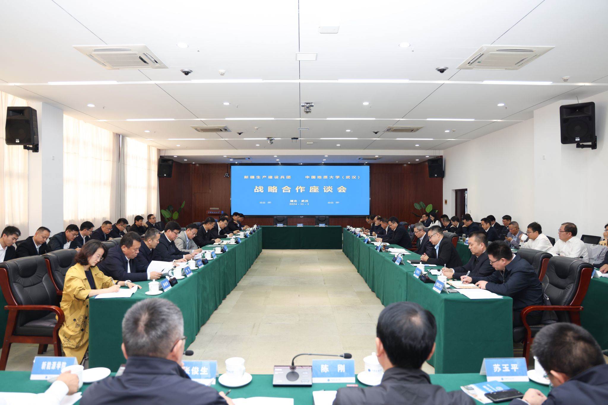 薛斌代表兵团党委、兵团向学校长期以来对兵团的支持帮助表示感谢。他指出,教育对新疆改革发展稳定具有特殊重要意义,兵团始终坚持教育优先发展,用胡杨精神育人,为兴疆固边服务,教育支撑和服务经济社会高质量发展的能力不断提升。他表示,自2017年5月双方签署战略合作框架协议以来,学校充分发挥在教育、科技、人才等方面优势,持续在学科建设、人才培养、科学研究等方面给予新疆和兵团大力支持。兵团将深入学习贯彻党的二十届三中全会精神,与地大深化战略合作,携手实现互利共赢。他希望学校一如既往参与和支持新疆和兵团经济社会发展,推动合作事项落地见效,为忠实履行新时代兵团职责使命、推进中国式现代化兵团实践提供有力支撑。