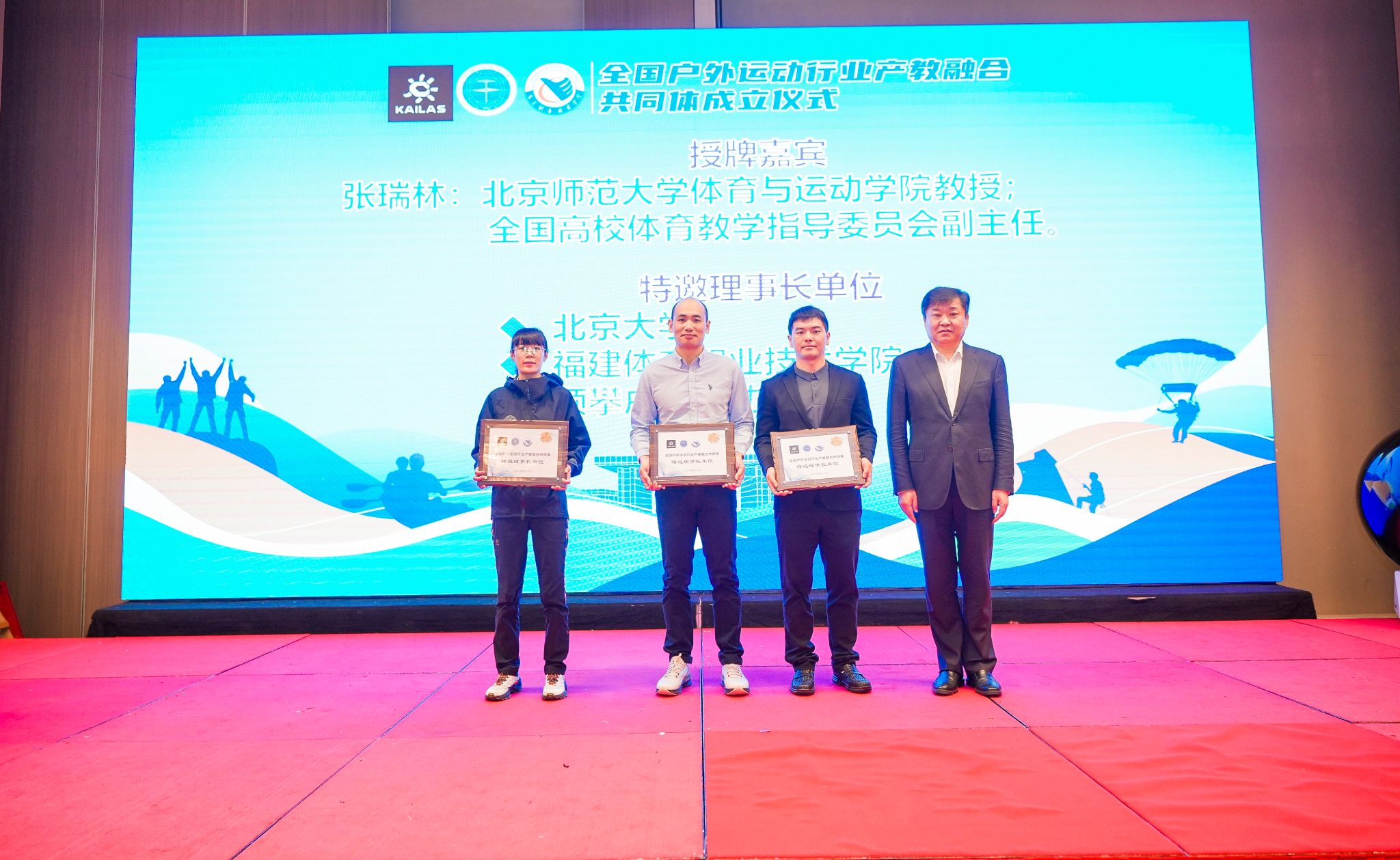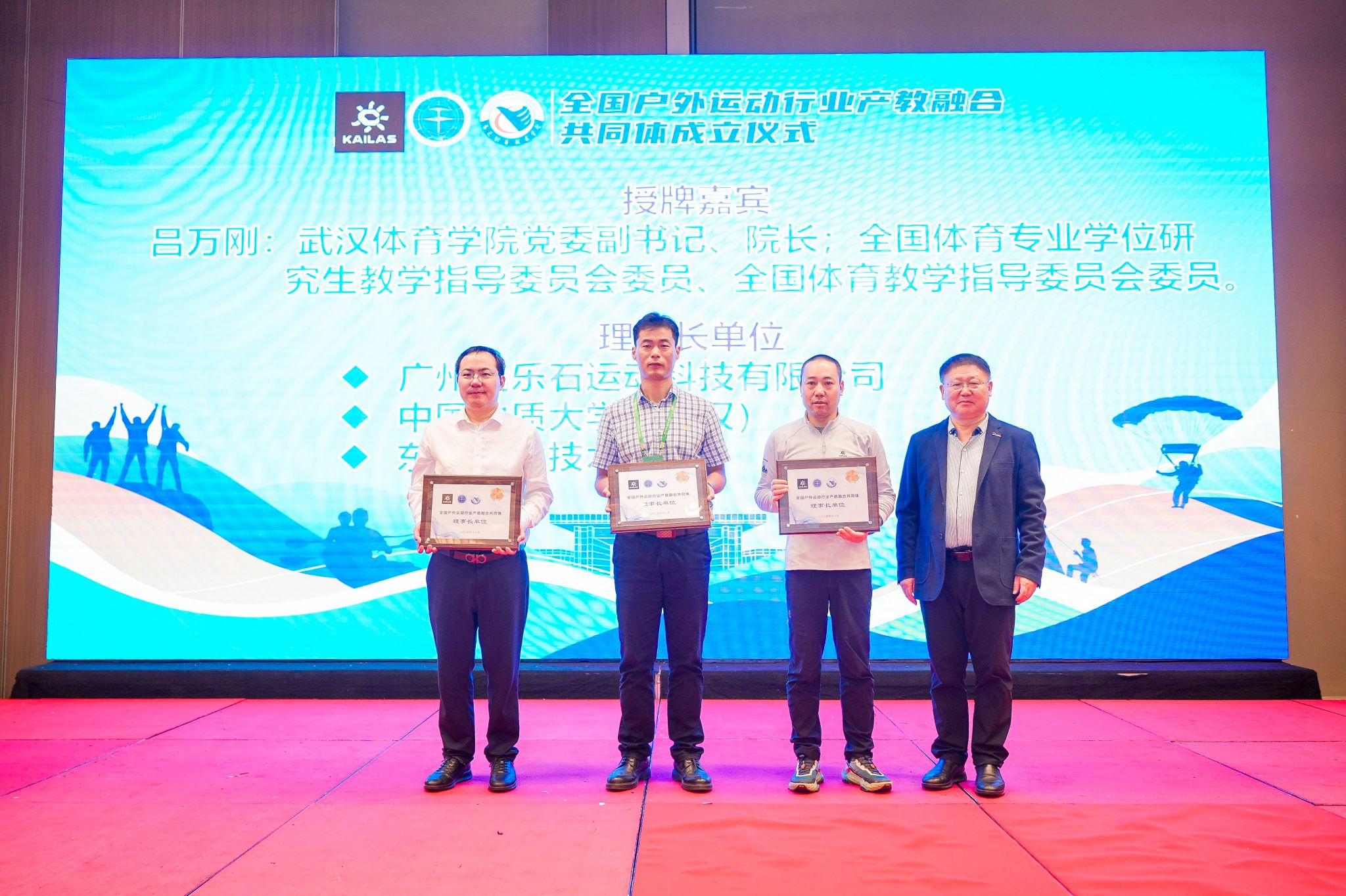 大会审议并通过了《全国户外运动行业产教融合共同体章程》,并举启动仪式。武汉体育学院党委副书记、校长吕万刚对理事长单位,北京师范大学教授张瑞林对特邀理事长单位,汕头大学副校长喻洪、东莞职业技术学院校长贺定修等对副理事长单位进行授牌。