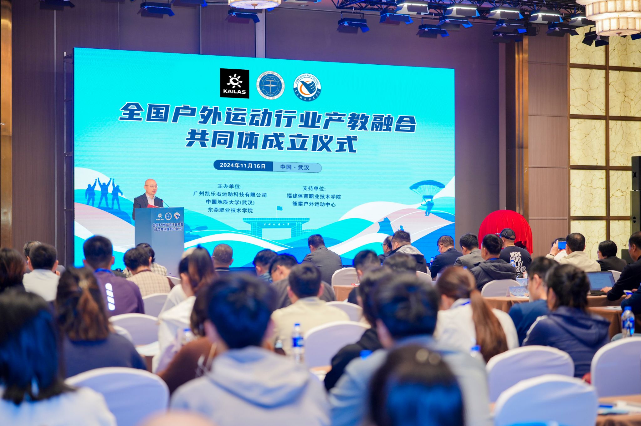 地大新闻网讯(通讯员 毛蕾 李元)11月16日,全国户外运动行业产教融合共同体在武汉成立。大会汇聚了户外运动领域的260余名专家学者、教育工作者、企业家及相关职能部门负责人,共同开启户外运动产业发展的新篇章。
