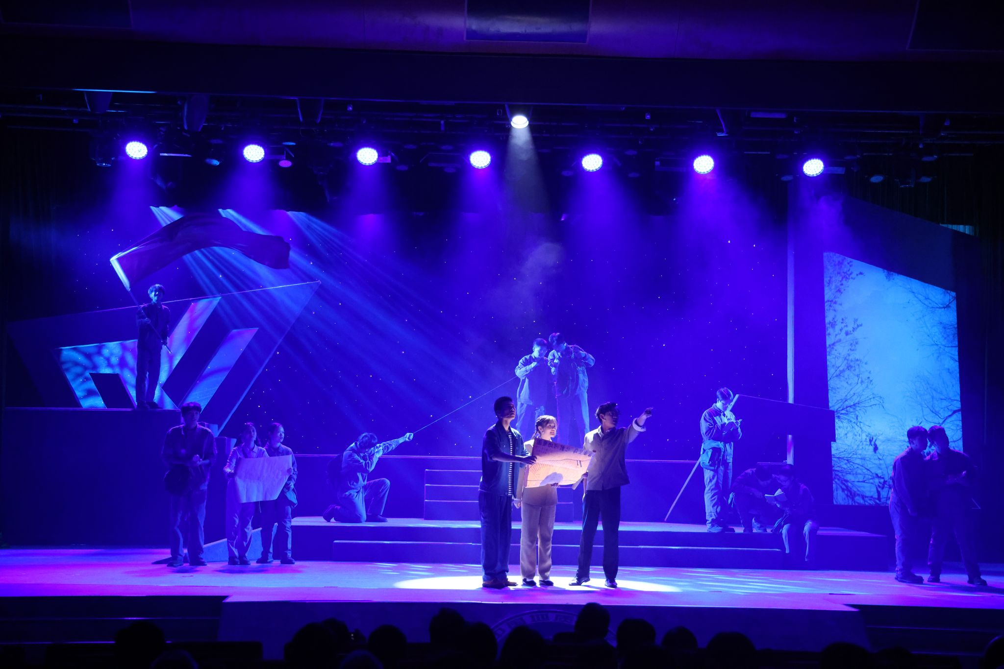 11月27日晚,与会人员在南望山校区弘毅堂观看“纪念李四光先生诞辰135周年原创话剧《大地之光》演出”,共同感受李四光先生的科学精神和家国情怀。米兰原创话剧《大地之光》以李四光先生“爱国、求是、担当、奉献”的价值追求为灵魂和主线,通过挖掘和还原其生平重大事迹,表达了以李四光为代表的科技工作者将人生价值追求和民族振兴、国家富强、社会进步和人民幸福紧密结合的高贵品格。《大地之光》是首批入选中国科协、教育部、共青团中央等部委“共和国的脊梁——科学大师名校宣传工程”的6个剧目之一,话剧自2012年11月首演至今,已在全国巡演60余场,直接辐射观众10万余人次,已经成为学校的一张靓丽名片。