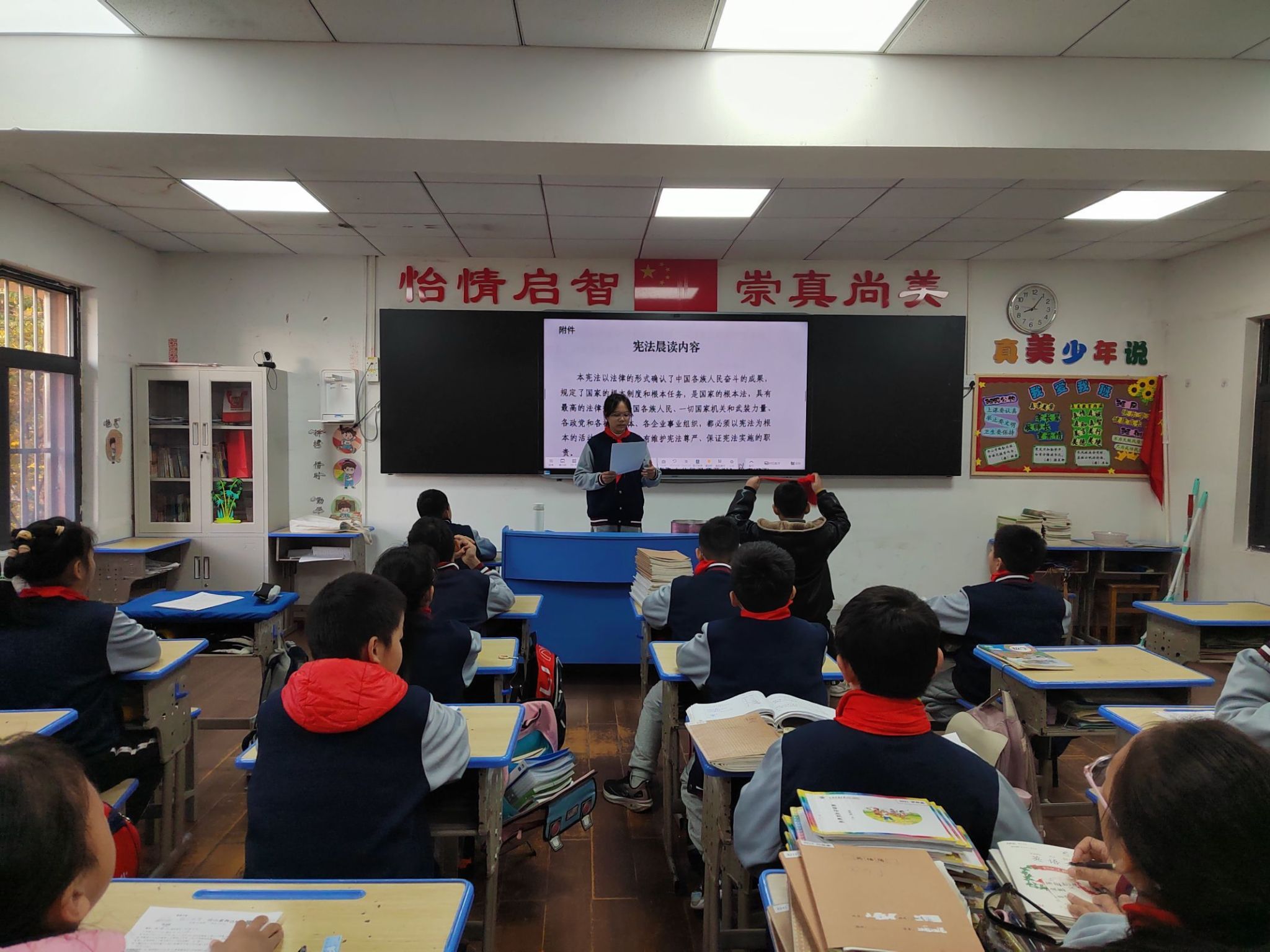附属学校学生利用早读时间,诵读宪法部分条款