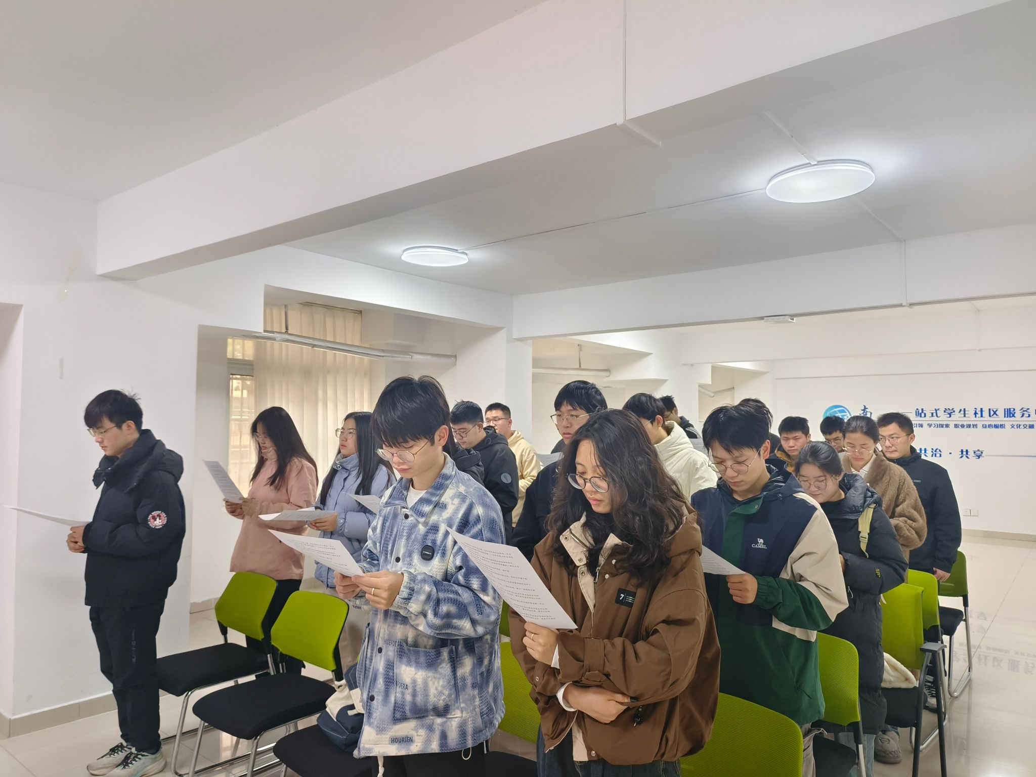 本科生院组织学生代表在一站式学生社区服务中心跟读宪法部分条款