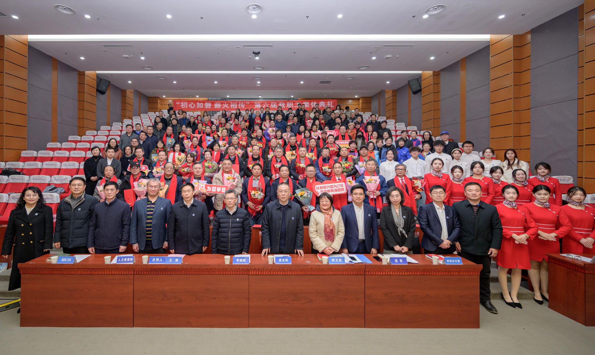 自2019年开始,学校每年集中举办一次教职工荣休典礼。教职工荣休典礼作为学校弘扬尊师重教优良传统,做好师道传承、加强教师队伍建设的重要举措,也是学校追忆奋斗时光、感恩教职工的重要载体。相关职能部门负责人、各⼆级党组织书记、分⼯会主席、青年教师代表以及学生代表近190人参加了典礼。典礼还通过微信视频号、抖音、微博等平台面向校内外师生和校友同步直播,观看人次达1万余人,受到了广泛关注。