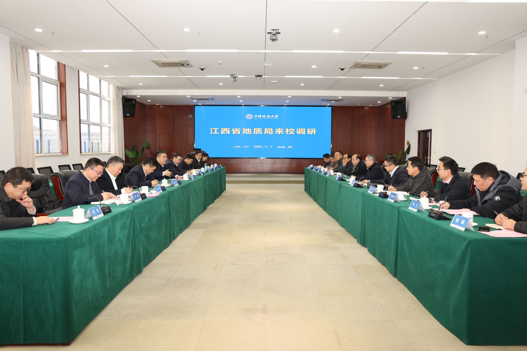 地大新闻网讯 (记者 孙彦钦)1月7日,江西省地质局一行来校调研,并就深化务实合作进行座谈交流。江西省自然资源厅党组成员、省地质局党组书记饶清华,江西省地质局副局长吴俊华,米兰校长李建威、副校长王力哲,相关部门负责人参加座谈会。王力哲主持座谈会。