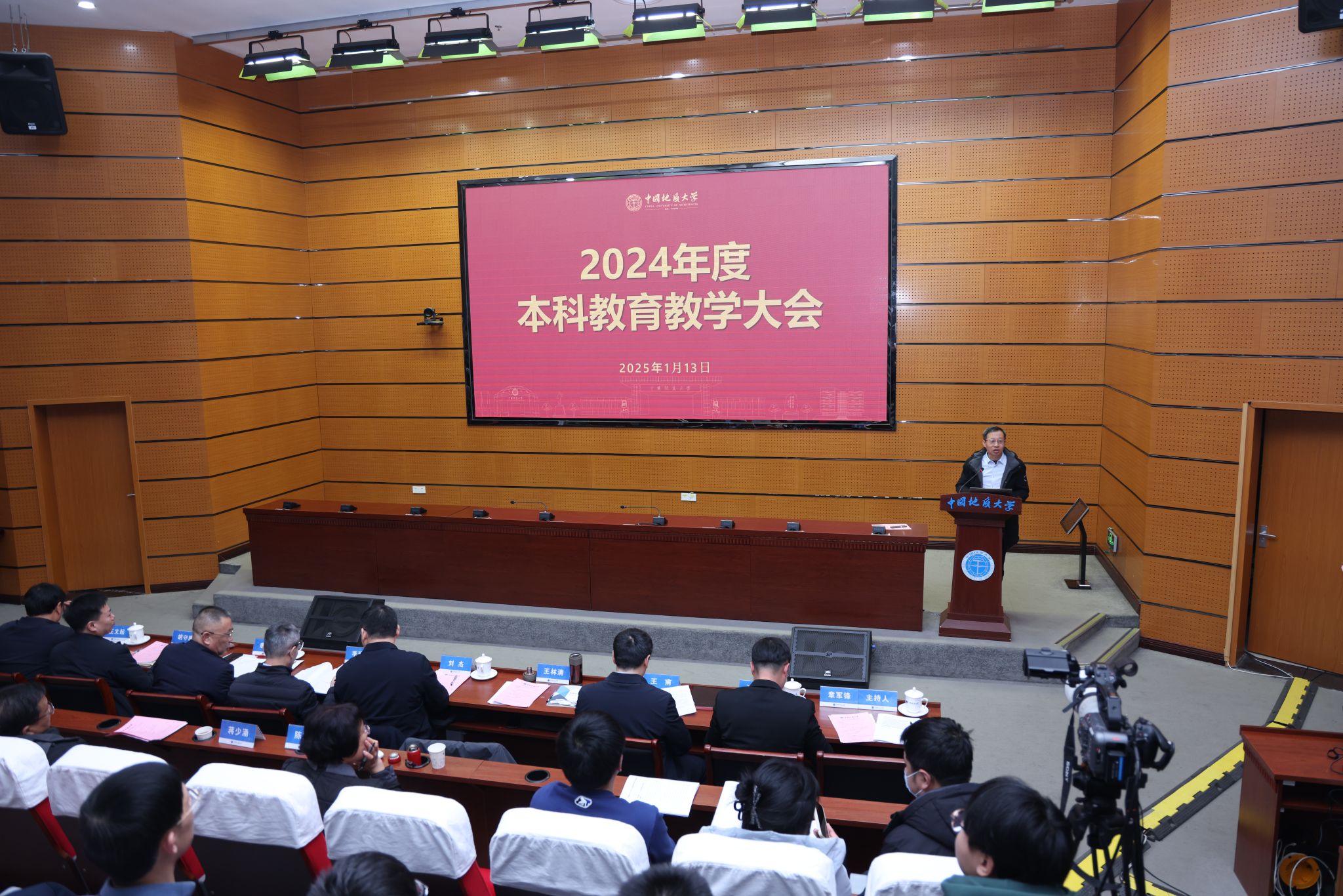校党委书记刘杰表示,召开2024 年度本科教育教学大会,聚焦巩固新一轮本科教育教学审核评估成效和抓好整改任务落实,研究和部署教育强国建设背景下本科教育教学改革与高质量发展的思路、举措和任务,充分体现了学校党委行政对本科教育教学工作的高度重视。针对如何回答“教育强国、地大何为”的时代命题,他要求,要提高站位,充分认识本科教育教学的重要地位;要压实责任,把整改方案做扎实、把任务分工做细致、把相关举措做到位,切实做好审核评估整改“后半篇文章”;要改革创新,以强化思想引领为基准点、以优化学科专业为支撑点、以加强科教产教融合为突破点、以充分发挥高质量党建引导保障作用为着力点,全面提高人才自主培养质量。