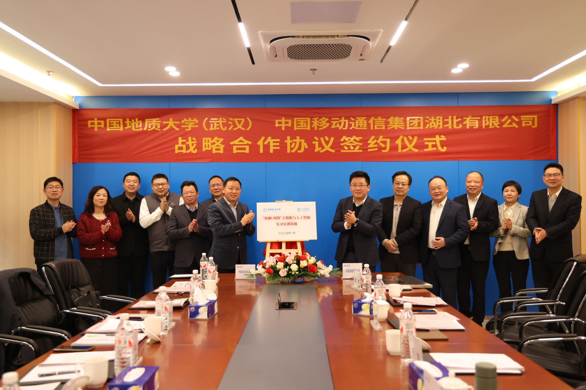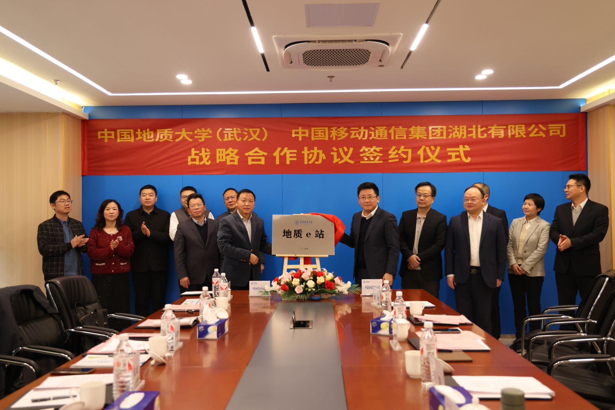 双方共同为学校地质e站和中国移动梧桐·鸿鹄实训基地授牌。