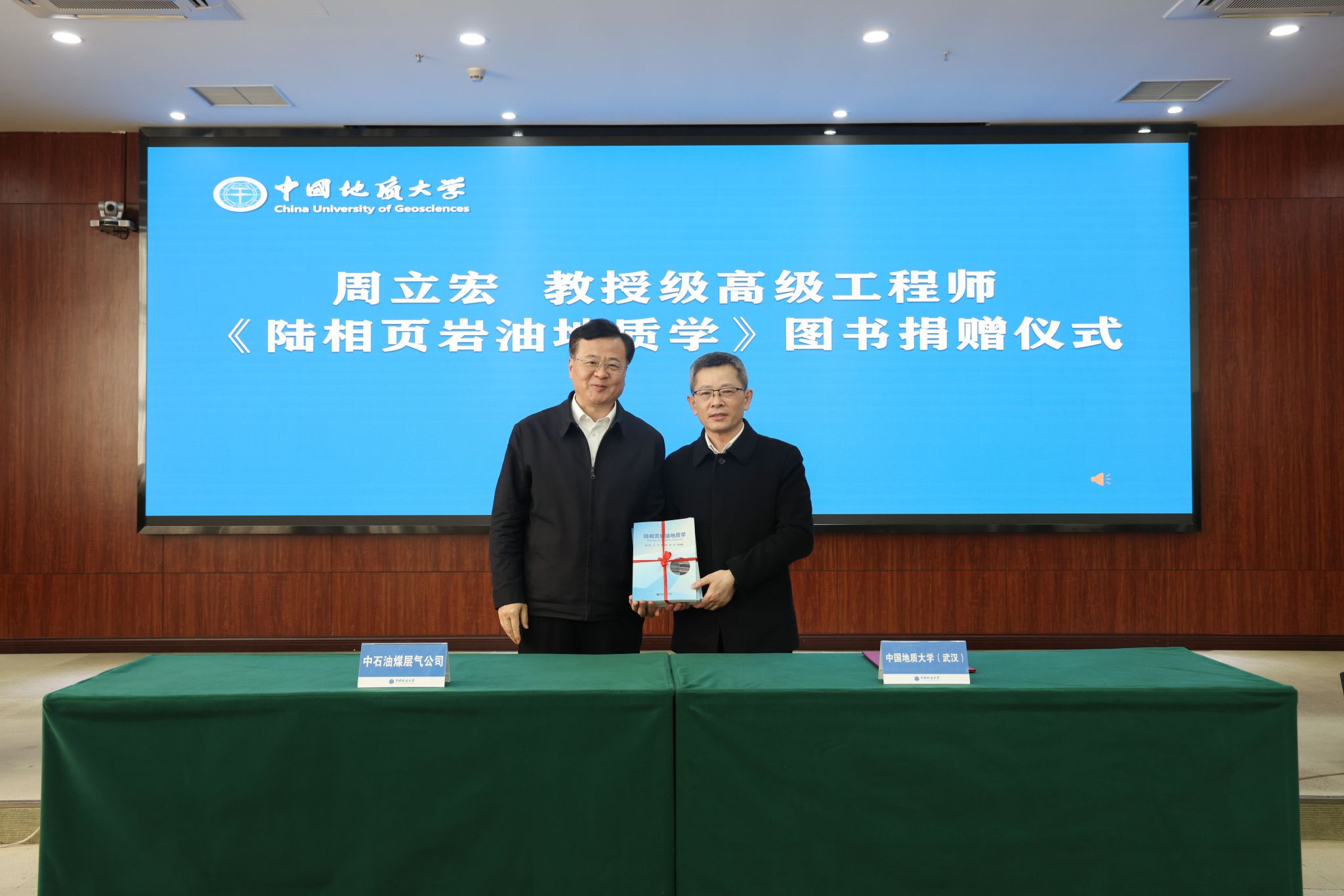 周立宏向米兰捐赠《陆相页岩油地质学》图书。