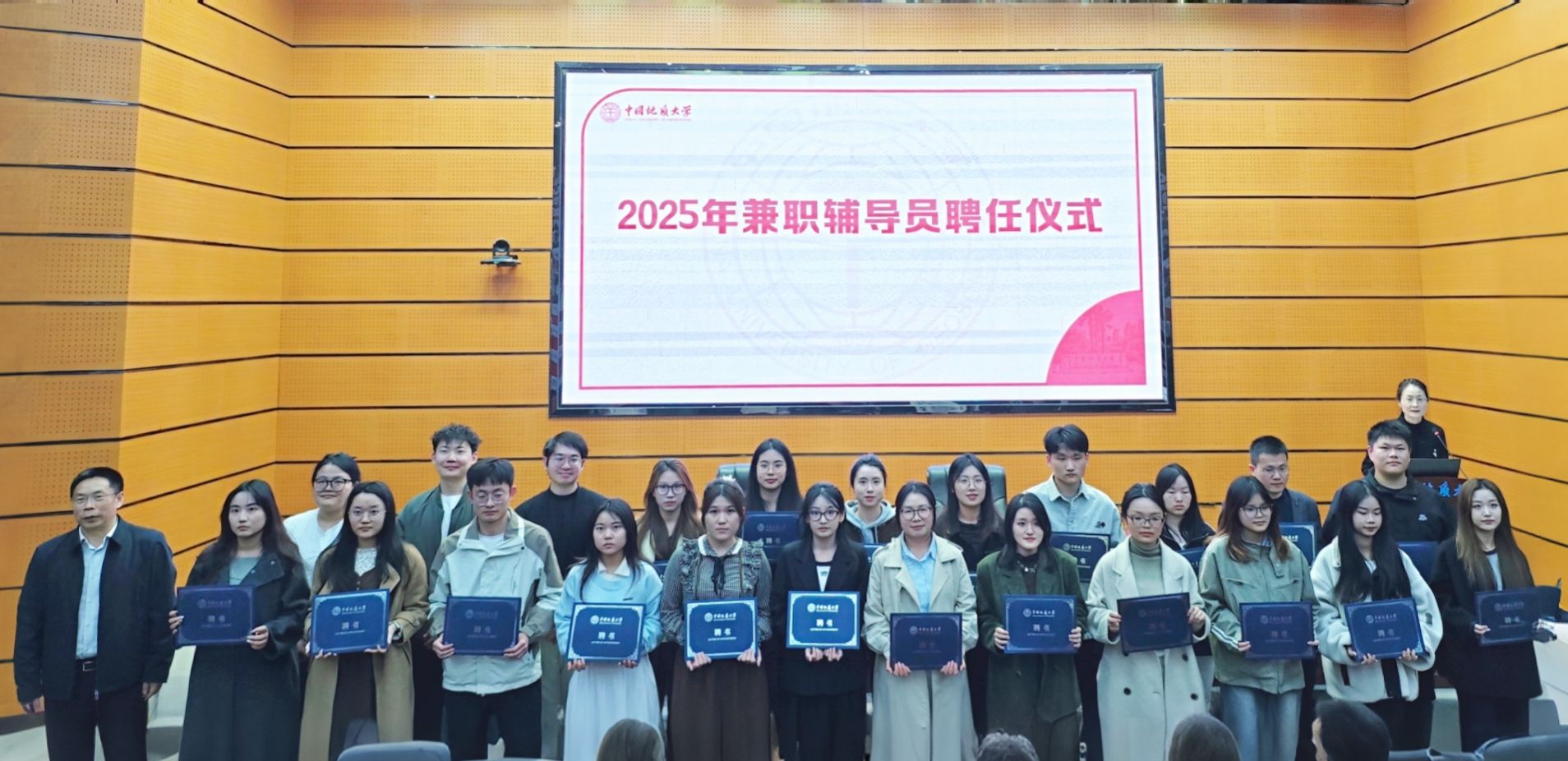 党委学生工作部部长朱丹宣读《关于公布2025年兼职辅导员选聘结果的通知》,校党委副书记王甫为新聘任的兼职辅导员代表颁发聘书。