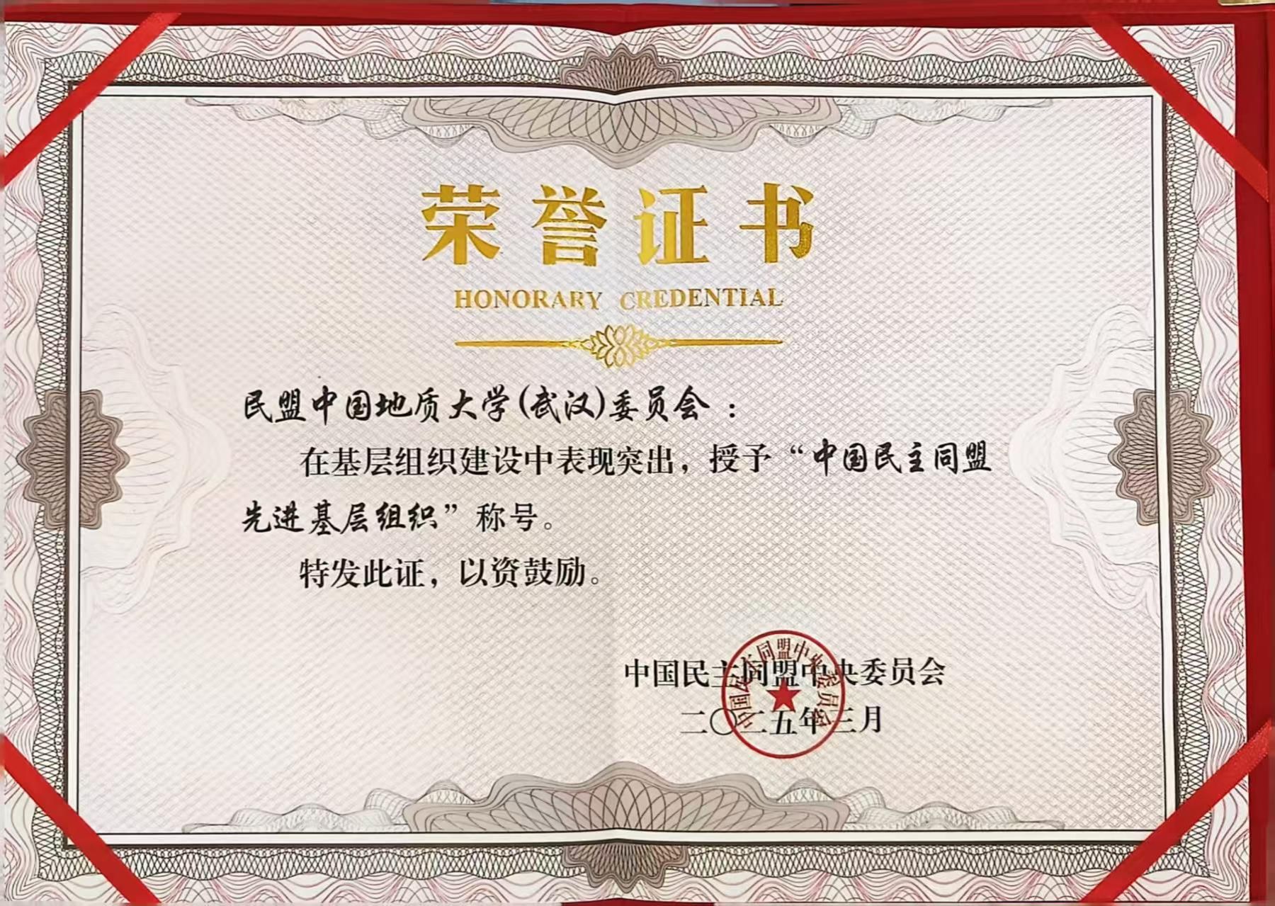 民盟地大委员会荣获民盟中央“先进基层组织”称号,是唯一一个获此荣誉的在鄂部属高校民盟基层组织。