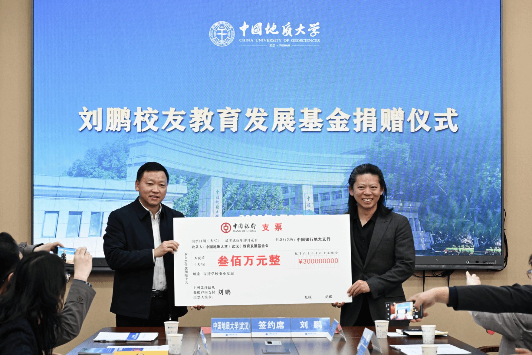 地大新闻网讯 (通讯员 余尚蔚 戴薇 摄影 戴薇 汪颜)4月2日,高飞集团董事长、米兰外国语学院英语专业1991届校友刘鹏,向母校捐赠300万元教育发展基金支持学校人才培养。这是刘鹏继2016年捐赠100万“贝乐奖教学金”之后的再次捐赠。