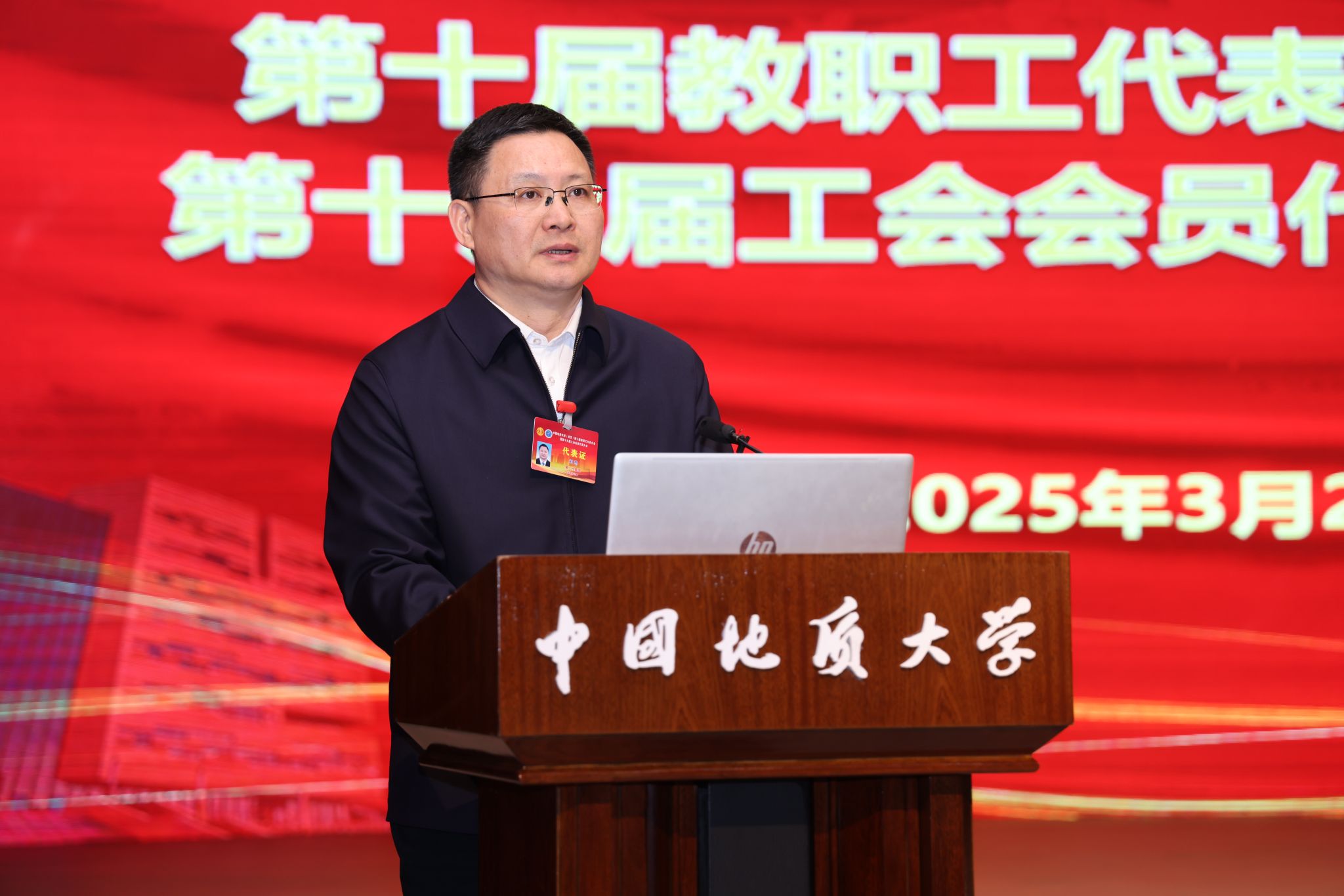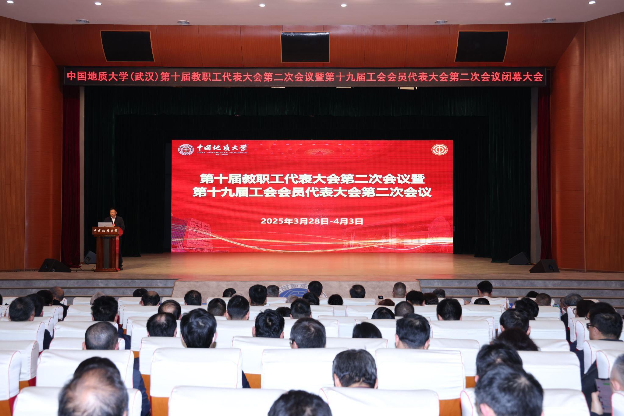 校党委书记刘杰致闭幕辞。他表示,各位代表认真审议各项工作报告,深入讨论事关学校改革发展的重要问题,提出了许多具有建设性的意见和建议,呈现出共谋、共建、共享的良好氛围。他强调,对标党中央2035年建成教育强国这一目标,学校必须加快建成世界重要的地学教育中心、人才中心和创新高地,力争2035年迈入地球科学领域世界一流大学行列。