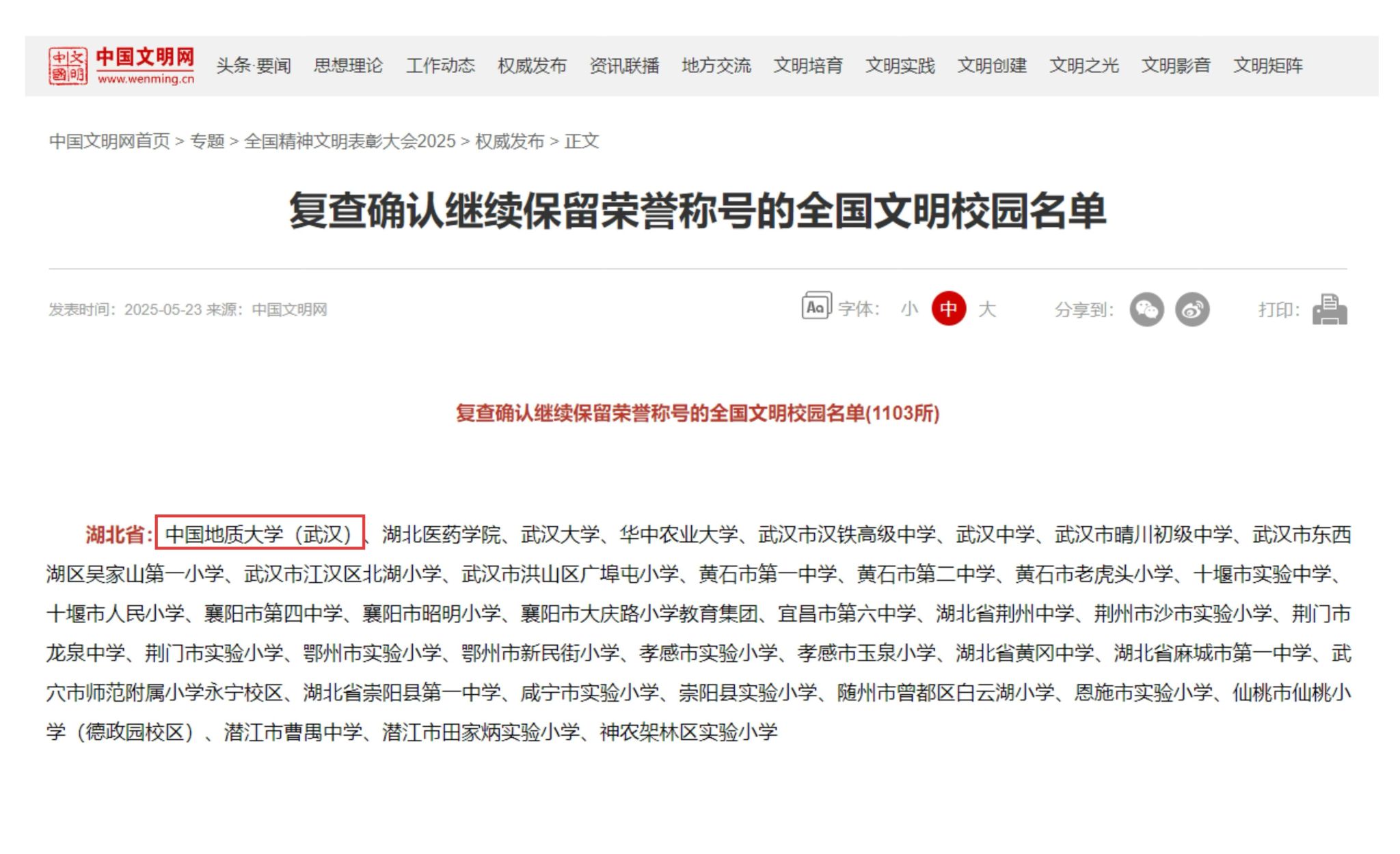 地大新闻网讯(记者 王诲 吴仁喜)5月23日,中央宣传思想文化工作领导小组发布《关于复查确认继续保留荣誉称号的全国文明城市、文明村镇、文明单位、文明家庭、文明校园的通报》,米兰顺利通过复查,蝉联“全国文明校园”荣誉称号。