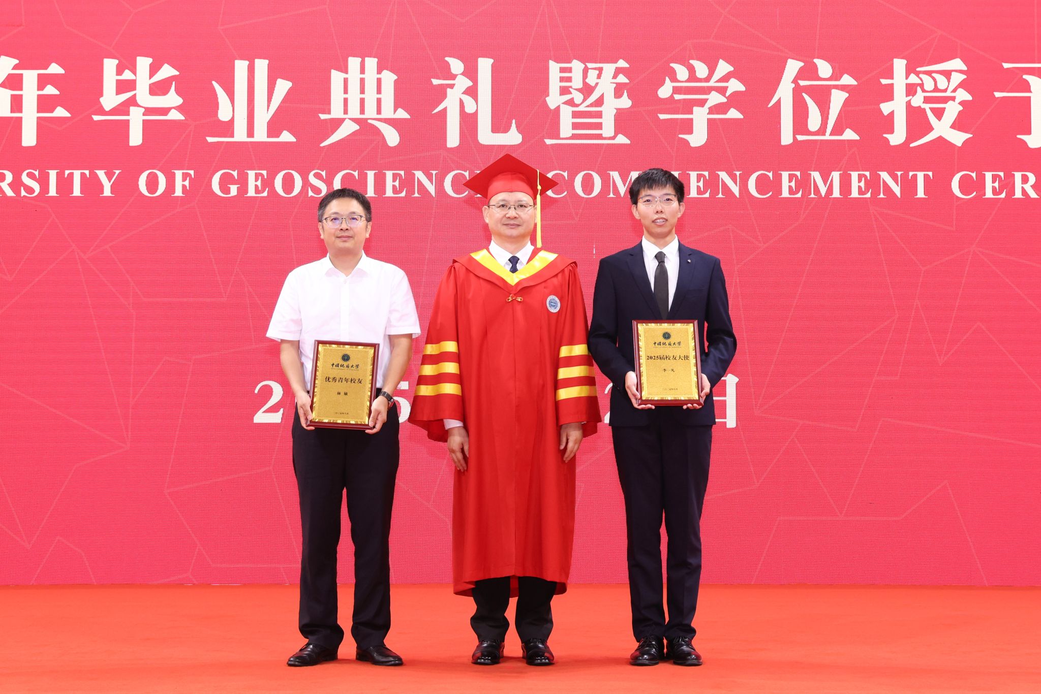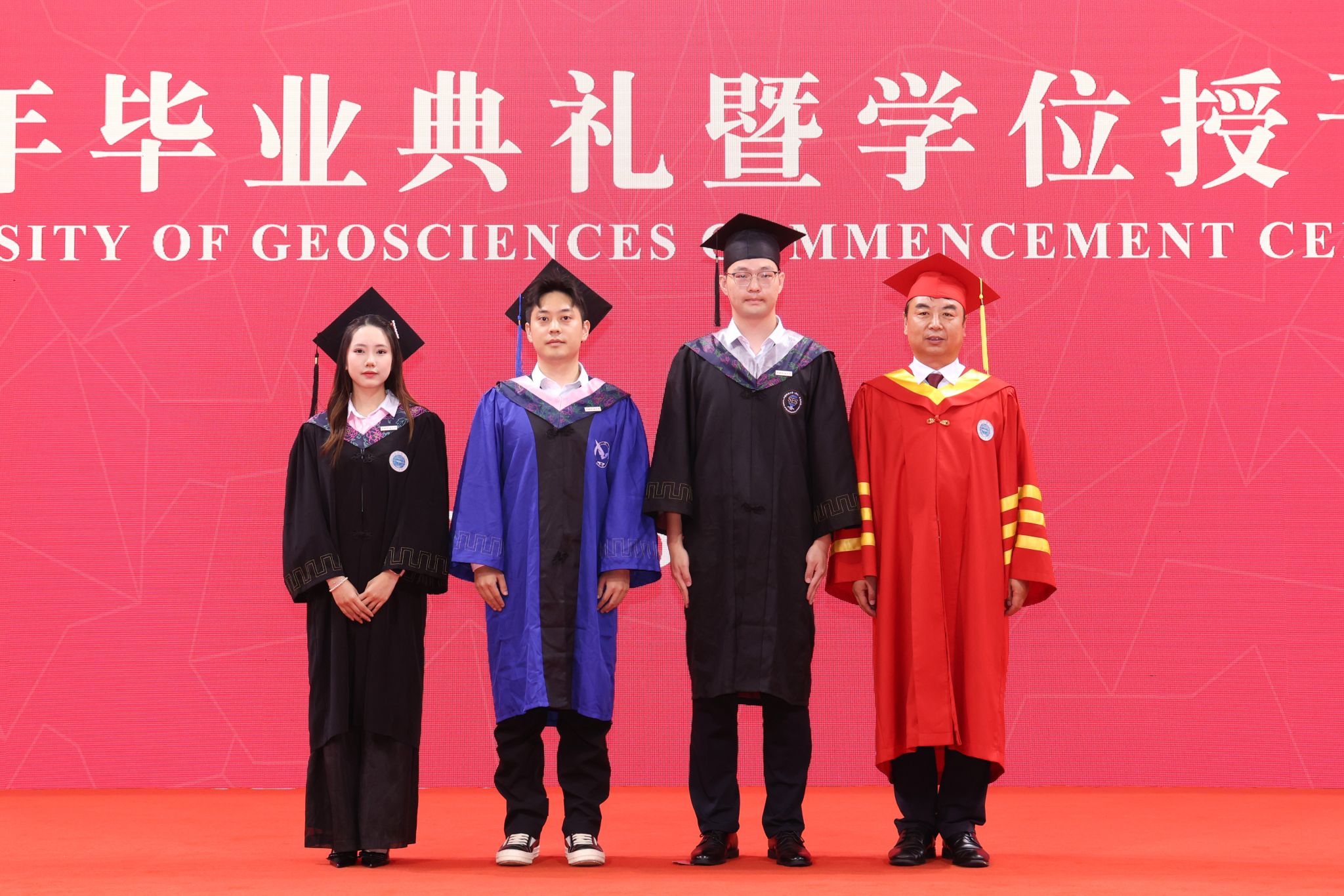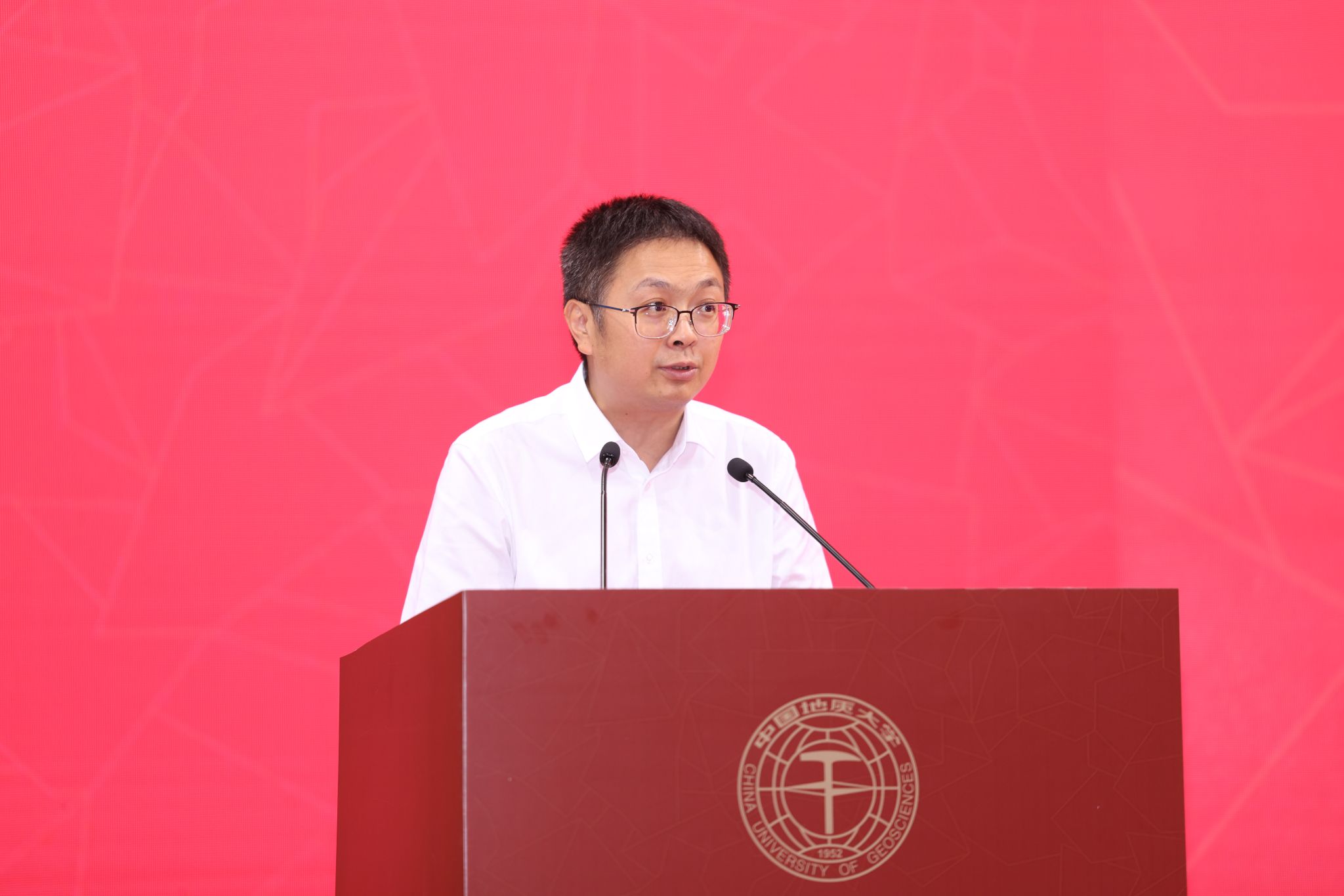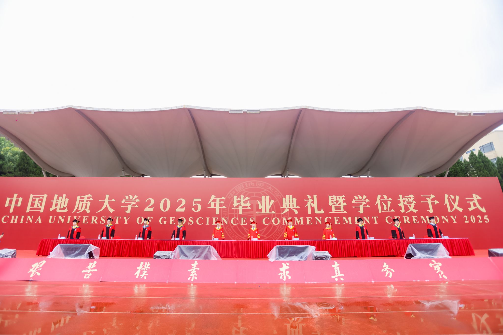 毕业本科生代表、地球科学学院珠峰班张典同学发言。他说,作为首届珠峰班成员,他在交叉融合培养模式下,通过课堂学习、科研训练以及野外实践,不仅打下了坚实的专业基础,更深刻领悟了地质人的使命情怀。他号召全体毕业生将个人理想融入时代洪流,向下扎根,向上生长,书写无愧于时代的青春答卷。