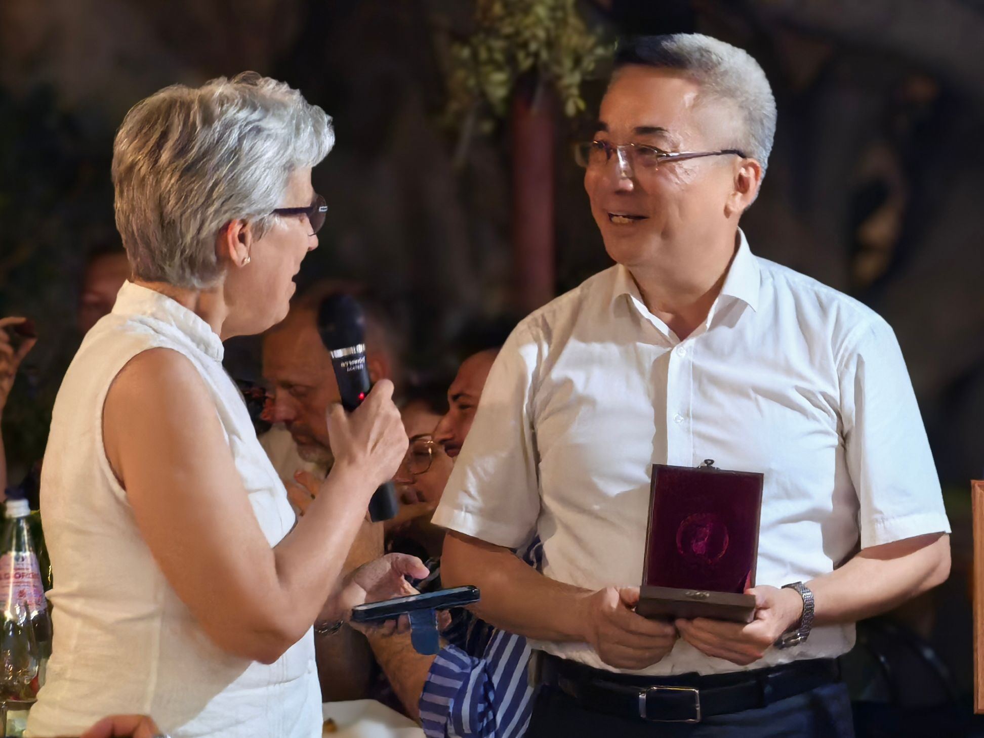 国际地球化学协会主席Elisa Sacchi向王焰新院士颁发奖章及证书