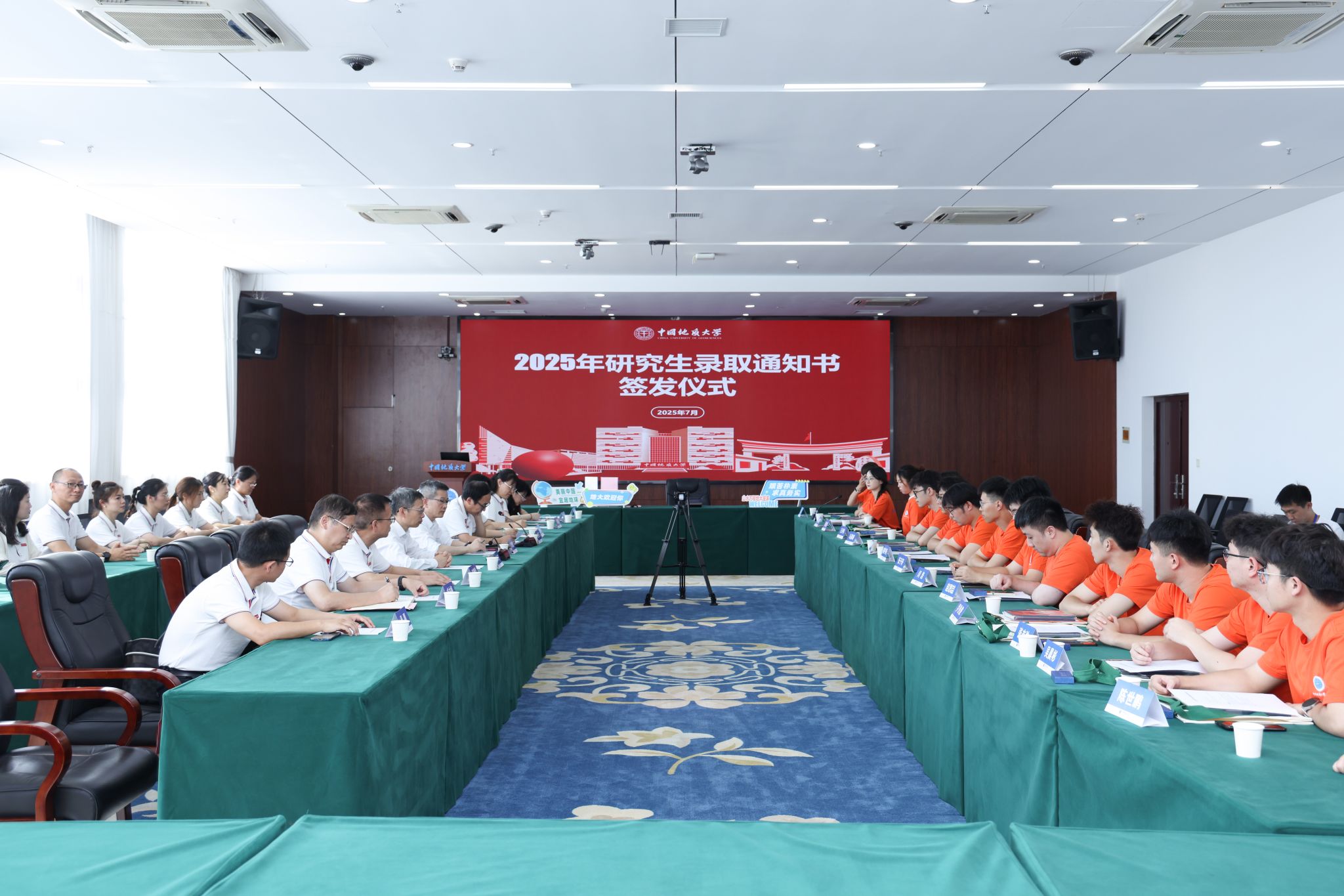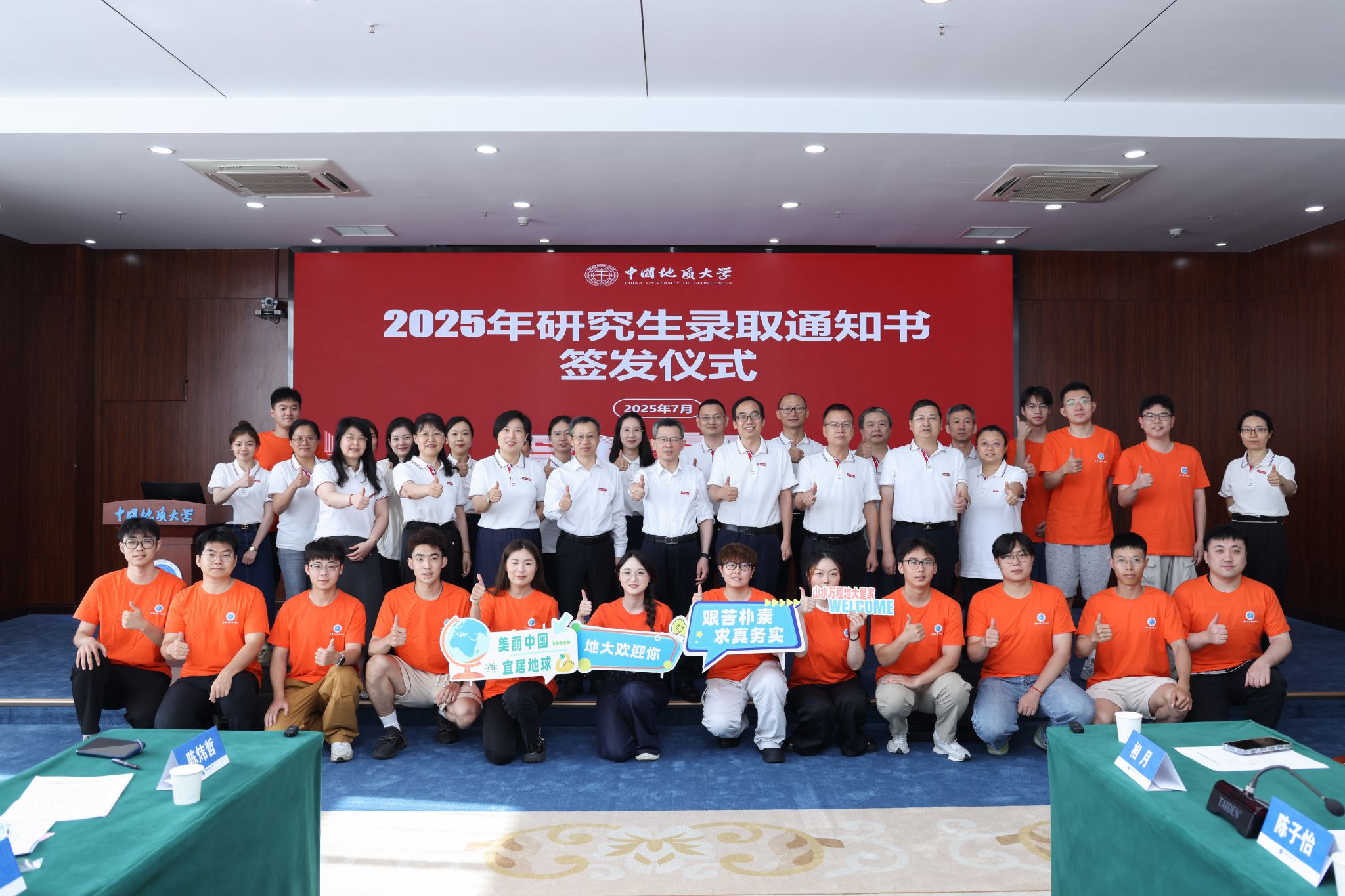 地大新闻网讯 (通讯员 刘梦 龚瑞麟 摄影 李锐欣)7月4日,2025级研究生录取通知书签发仪式举行,校长李建威亲笔签发录取通知书并为全体新生寄语,副校长章军锋、研究生院全体人员及研究生新生代表共同见证。