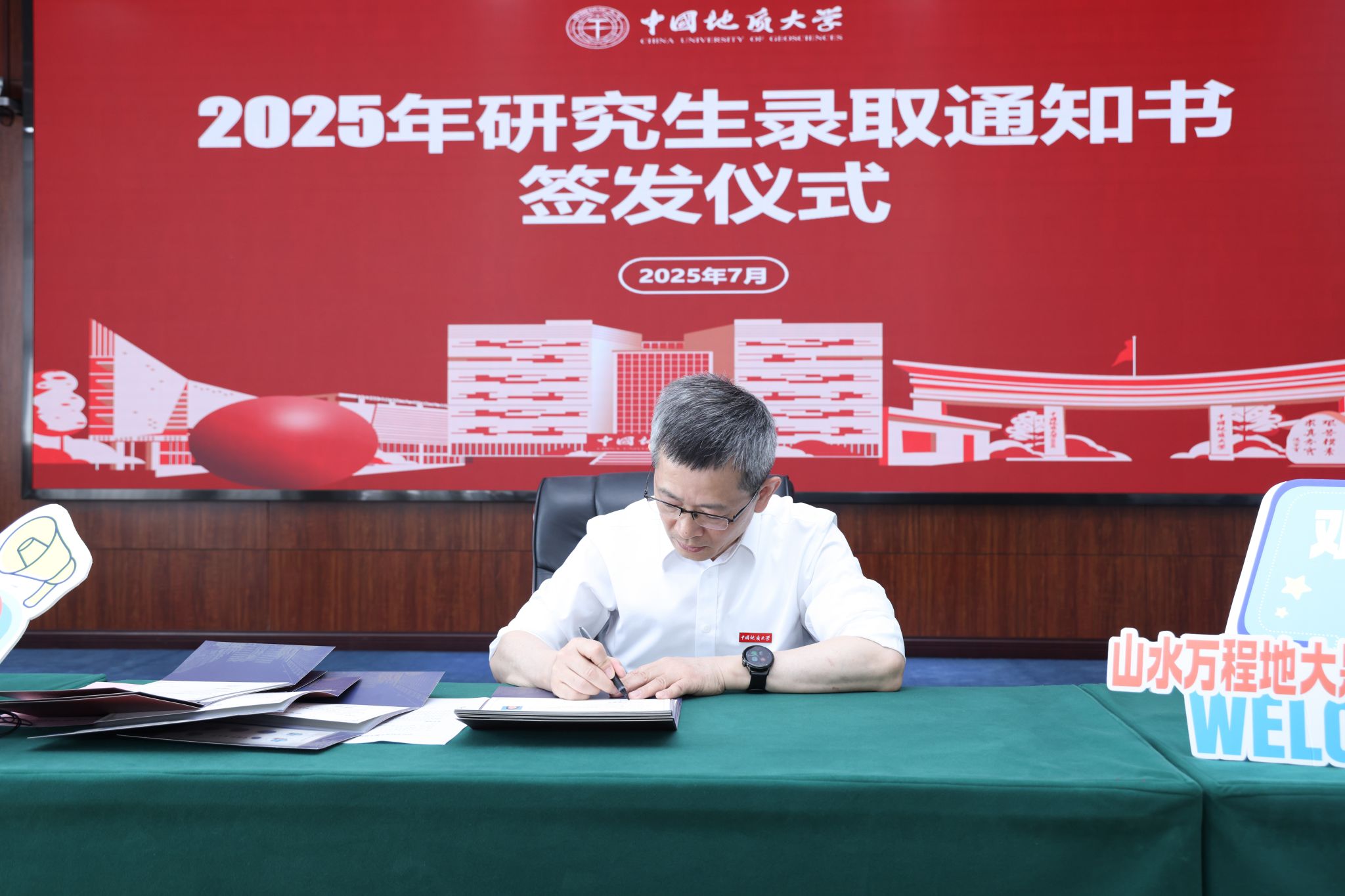 李建威亲笔签发2025级研究生录取通知书。他代表全校师生,对即将加入地大大家庭的全体2025级研究生新生表示热烈的欢迎。他勉励新生以探索之心开启地大新征程,在知识的沃土深耕,在科研的天地翱翔,用智慧解读地球密码,用创新书写青春答卷。