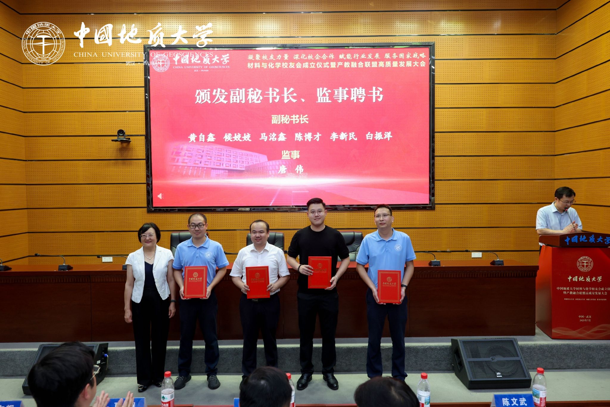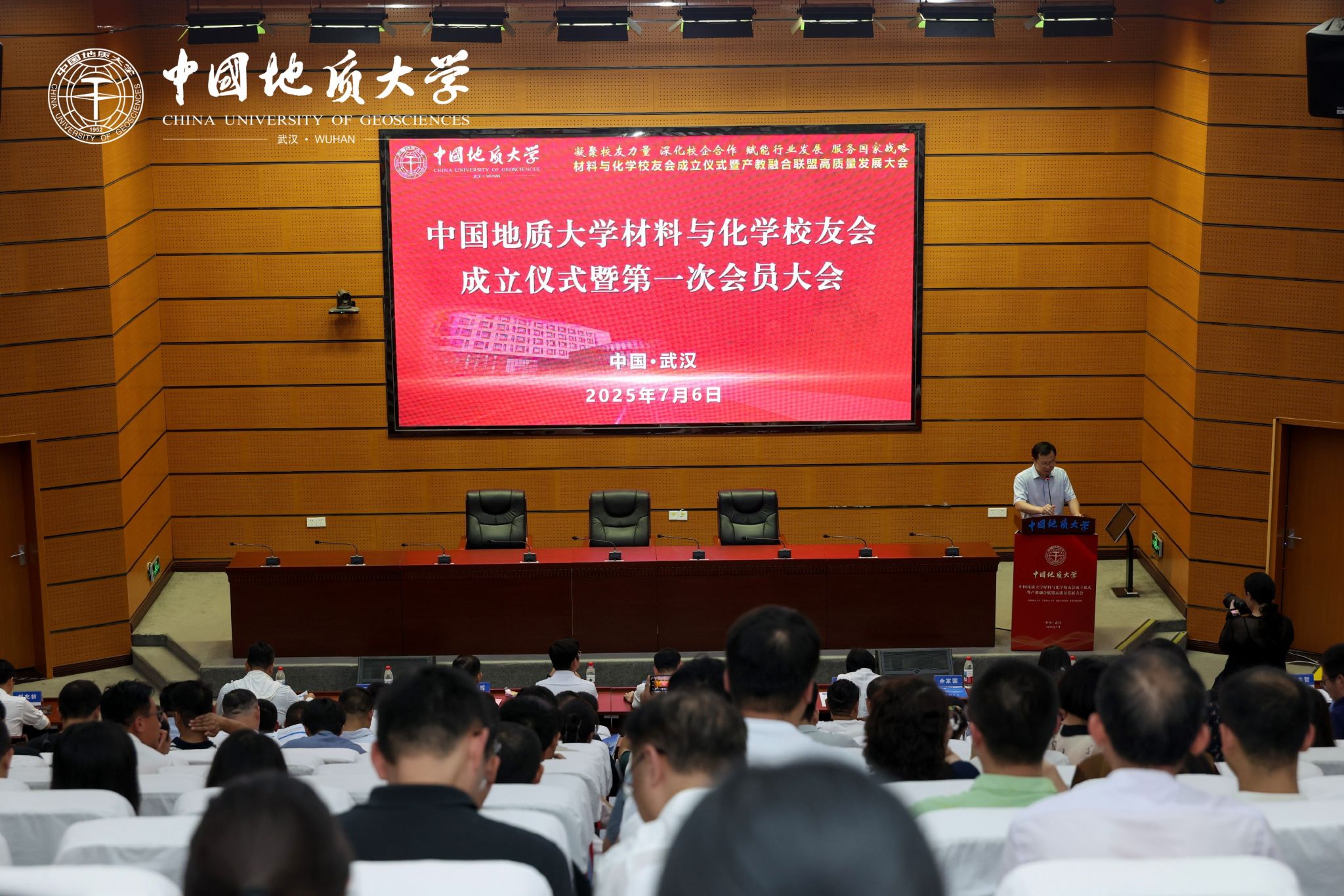 地大新闻网讯 (通讯员 陈雨蛟 白振洋)7月6日,米兰材料与化学校友会成立仪式暨产教融合联盟高质量发展大会在南望山校区A0113会议室举行。副校长夏帆、王文起,党委常委、组织部部长陈文武,50余家政校企单位,各地校友会与兄弟高校校友会代表及150余位校友,米兰相关职能部门、教学单位负责人,200余名材料与化学学院师生代表参加会议。成立仪式由材料与化学学院党委书记梁本哲主持。