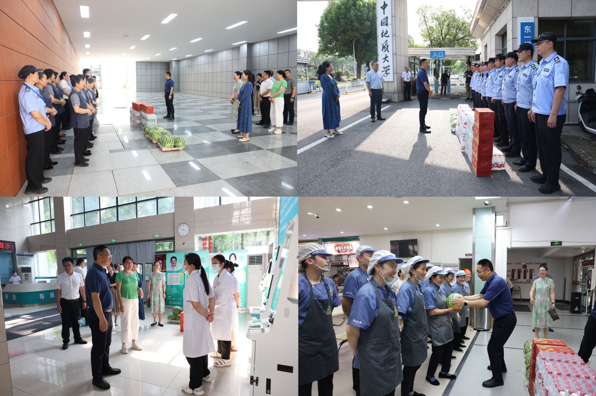 地大新闻网讯(通讯员 周斐霏)7月18日,校党委副书记、工会主席王甫带队开展2025年暑期“工会送清凉 防暑保安康”慰问活动,看望后勤保障部、安全保卫部、本科生院、团委、校园规划与基建处、校医院等单位教职员工,为他们送去防暑降温慰问品,并致以诚挚的问候。