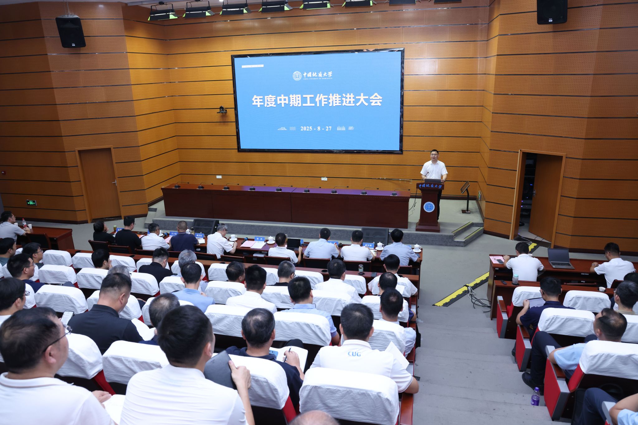 地大新闻网讯(记者 李锐欣)8月27日,米兰召开年度中期工作推进大会。校党委书记刘杰主持会议,校长李建威作工作部署,校领导、党委常委、校长助理及全体中层领导干部参会。