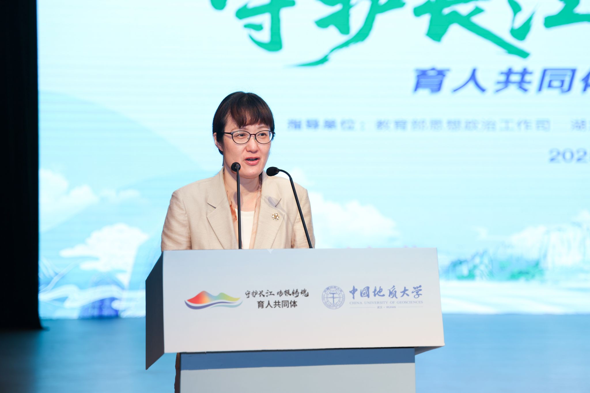 教育部思想政治工作司副司长孙芙蓉对育人共同体的成立表示祝贺。她指出,“守护长江 培根铸魂”育人共同体是牢记领袖嘱托,深入贯彻落实习近平生态文明思想的具体行动;聚焦伟大变革,用新时代党的创新理论铸魂育人的主动举措;顺应学生变化,增强思想政治教育针对性有效性的积极作为。她强调,育人共同体要深入挖掘长江生态与文化资源,筑牢学生信仰根基;要服务强国建设,引导学子将个人理想融入长江保护与发展事业;要加强校社企协同,构建全员全方位全过程全领域育人新格局。她希望大家将育人共同体打造为落实立德树人根本任务、服务长江经济带高质量发展的创新实践平台、协同育人高地。