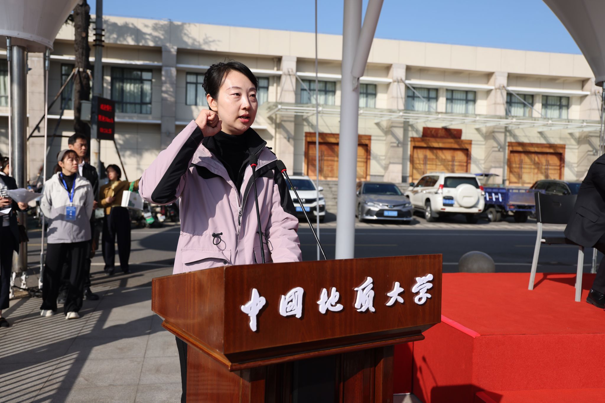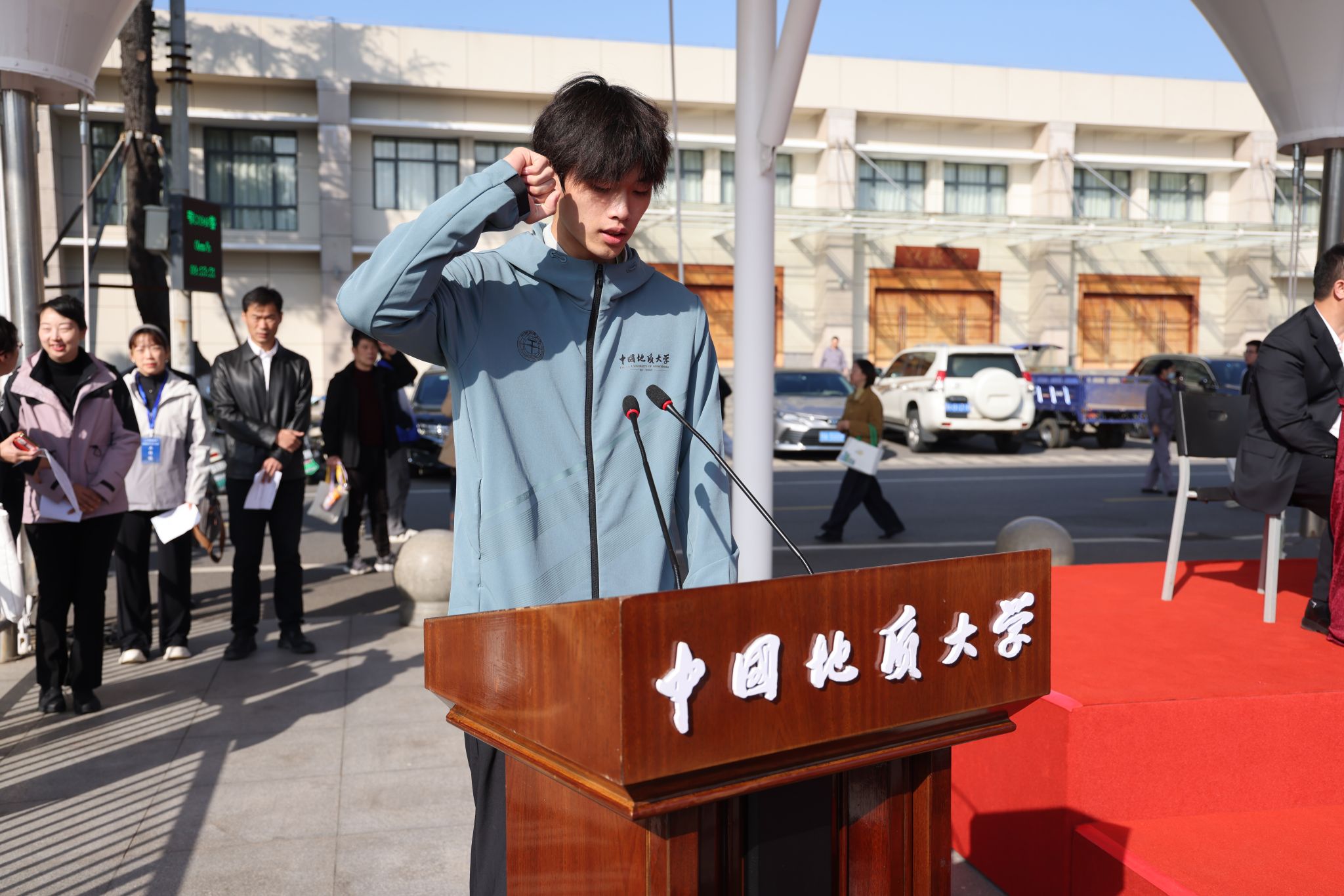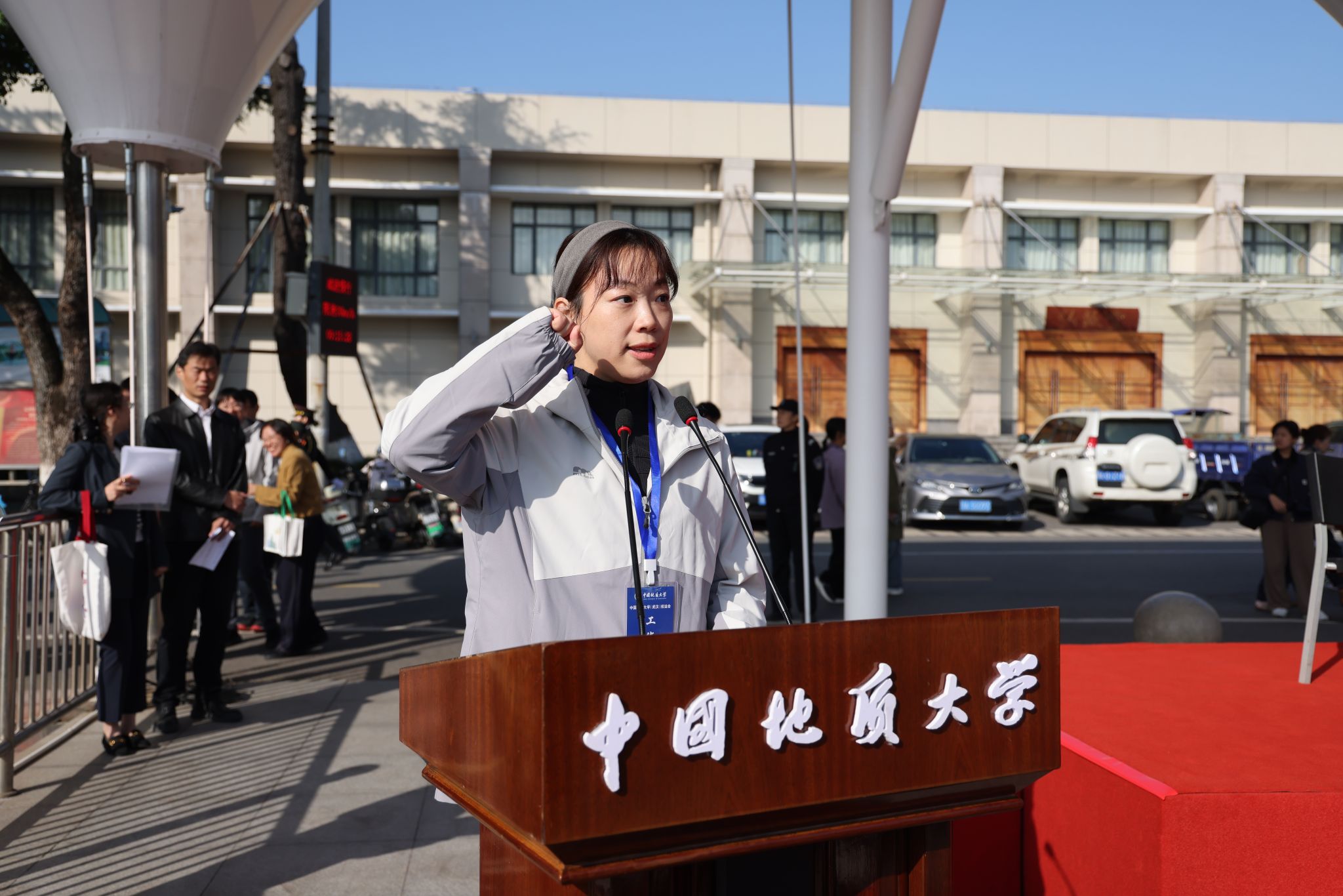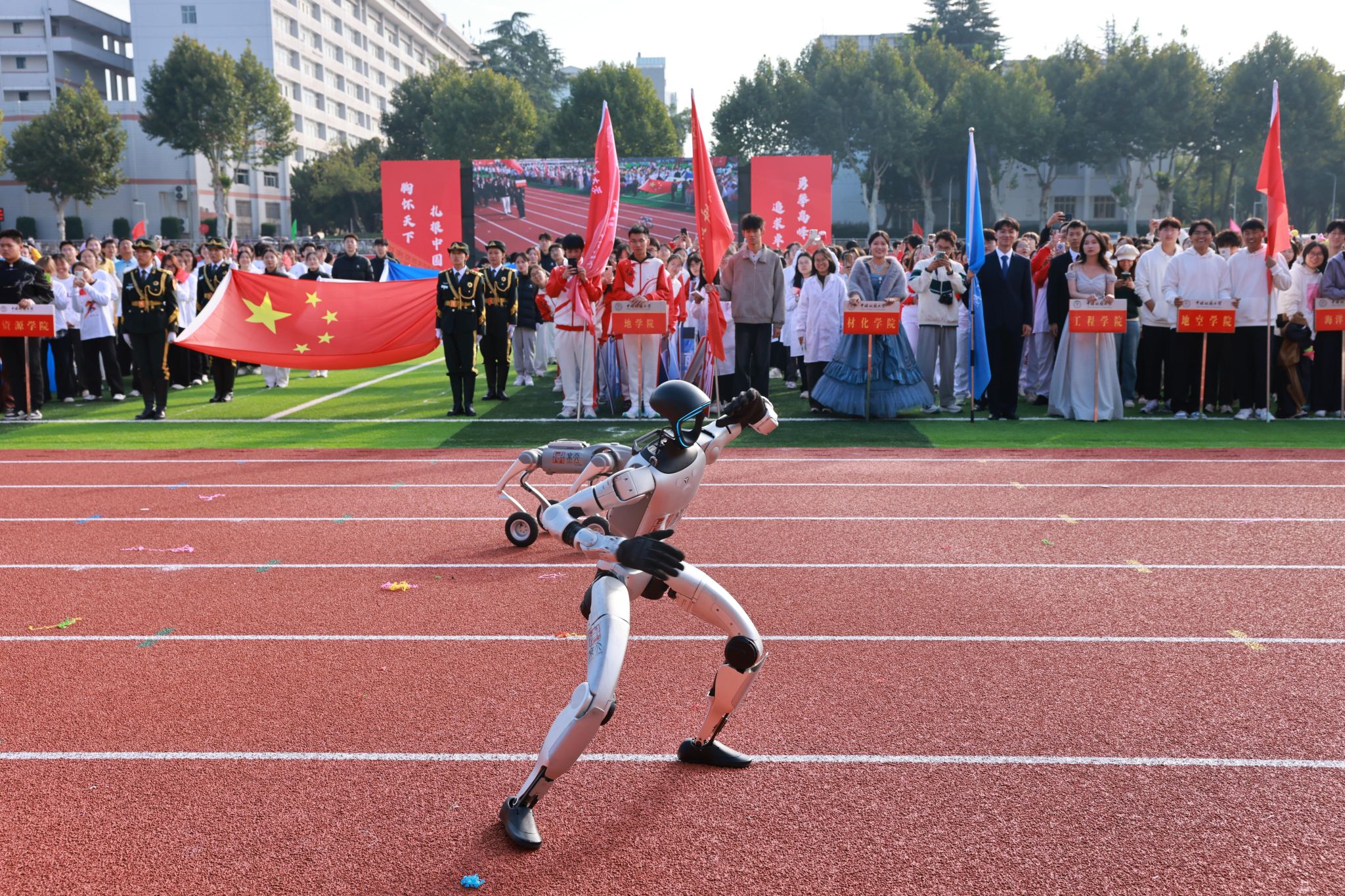 校长李建威致辞。他指出,学校始终将体育运动与事业发展紧密结合,形成了以登山、攀岩为特色的体育传统,“为国攀登”的精神已融入地大人的血脉,并延伸至“上天入地、下海登极”的各个科研领域。学校坚持服务“体育强国”“健康中国”战略,积极推动群众体育与专业体育共同发展,营造了浓厚的校园体育文化氛围,并在国内外赛场上成绩斐然。他号召,师生以运动会为新起点,弘扬奥林匹克精神,将赛场上的拼搏、协作与进取精神,转化为推动学校发展的强劲动力,为建设地球科学领域世界一流大学奋勇前进。