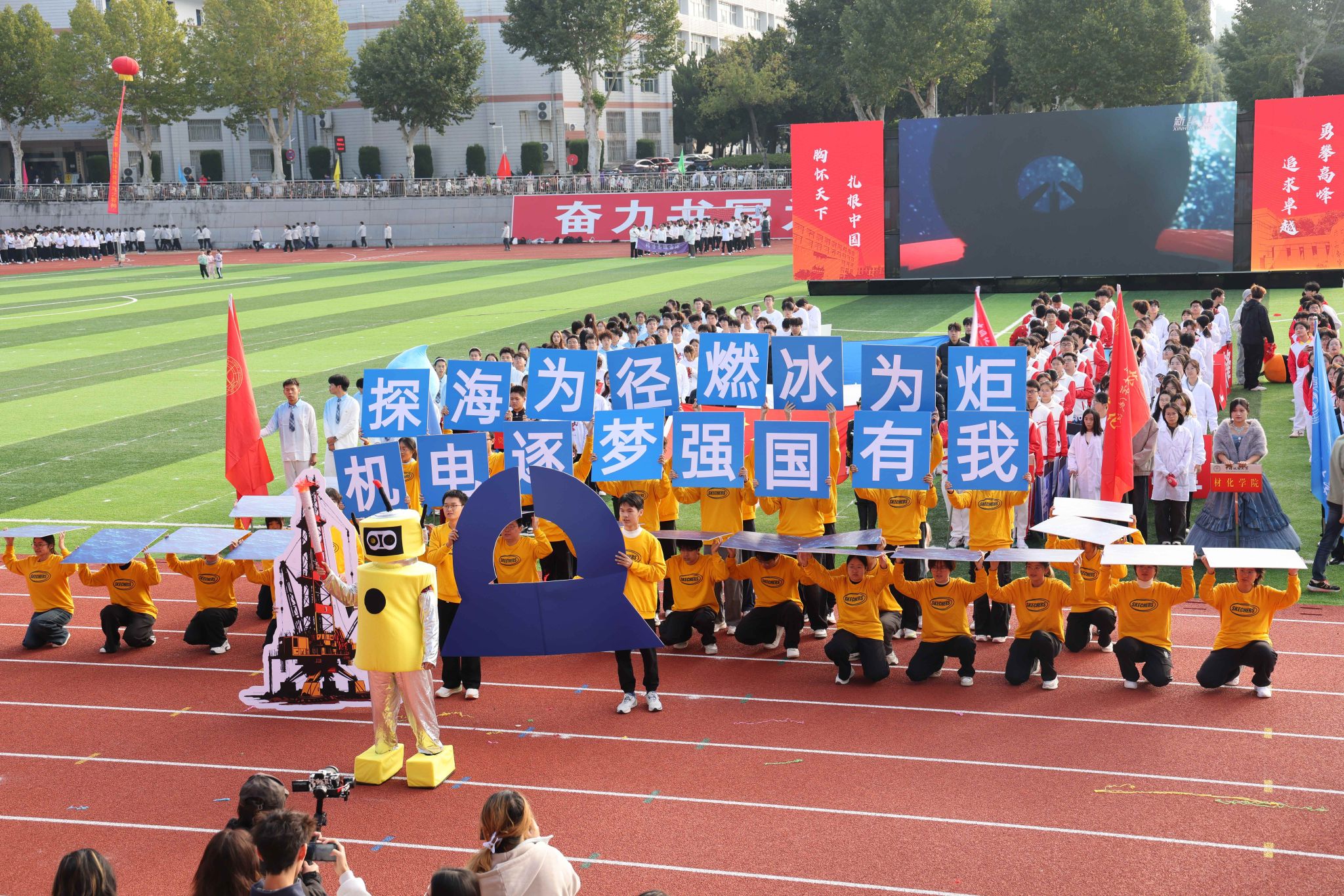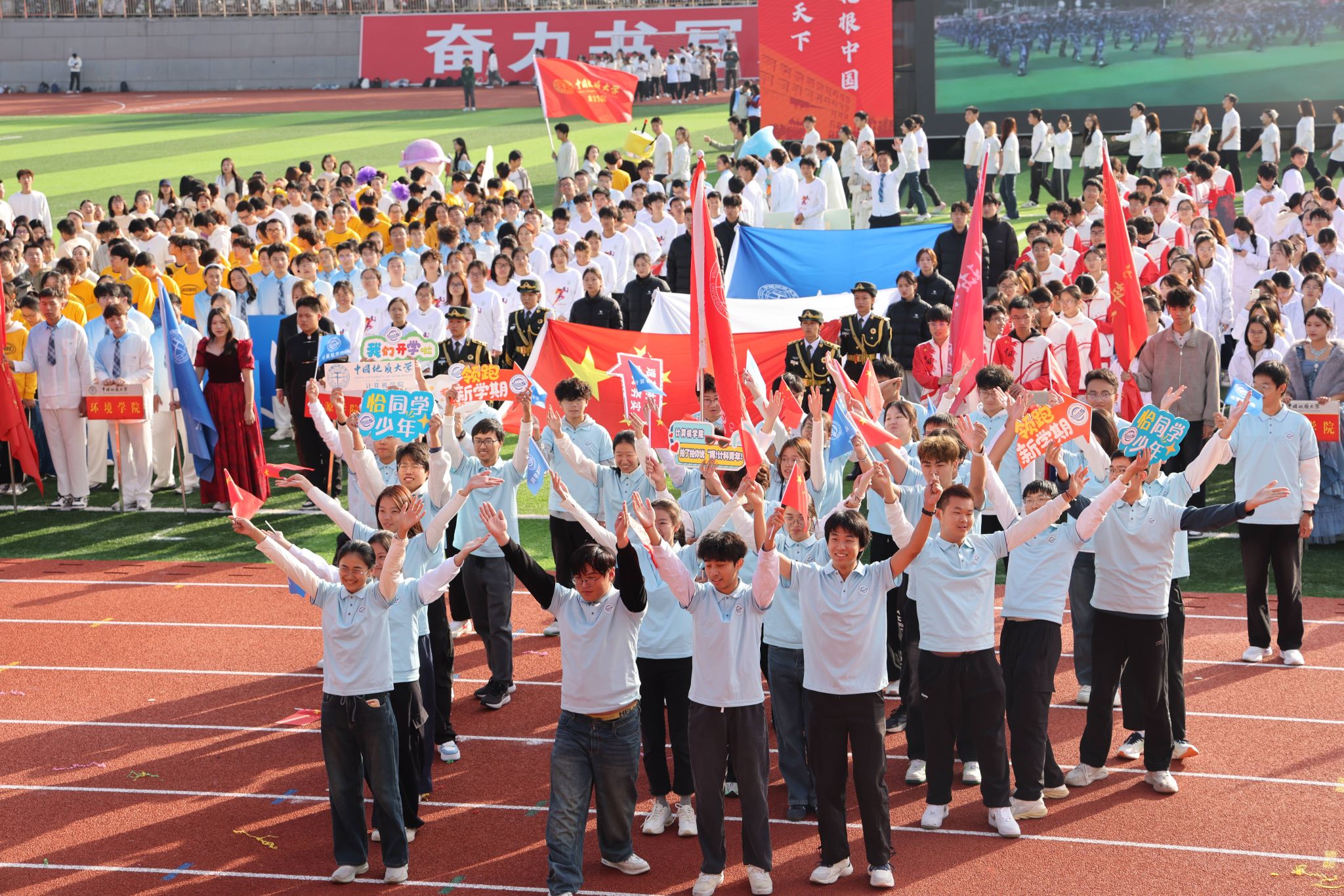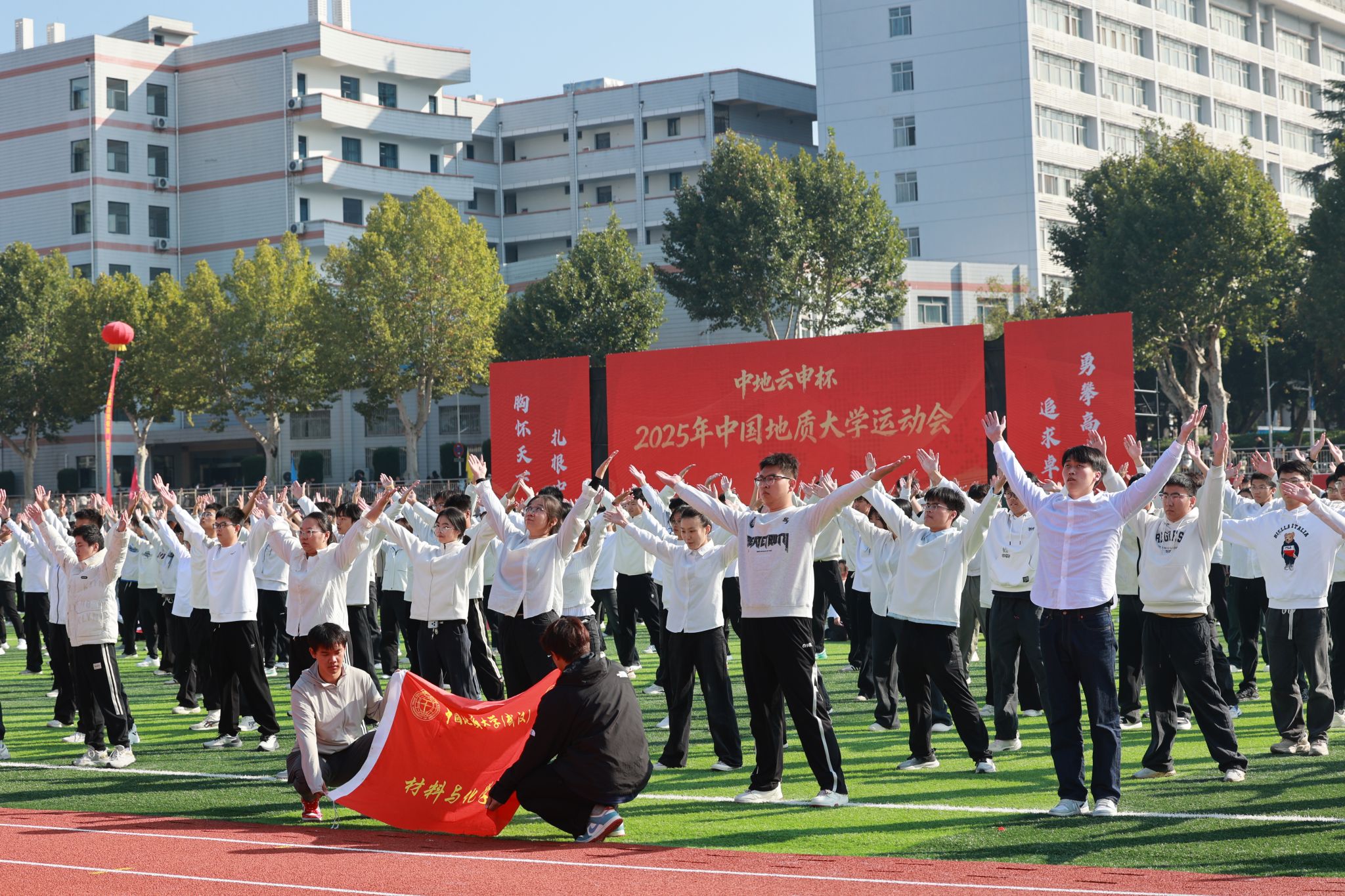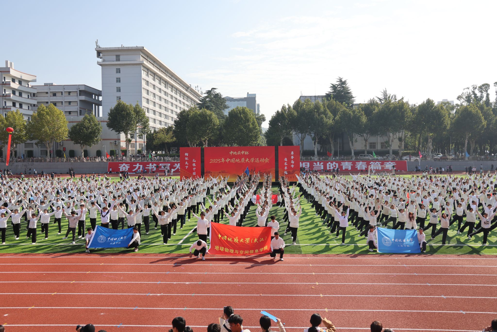 广播操比赛在开幕式后火热登场。同学们动作整齐划一,脸上写满自信,举手投足间都跃动着青春的乐章,展现了地大人的卓越风采。