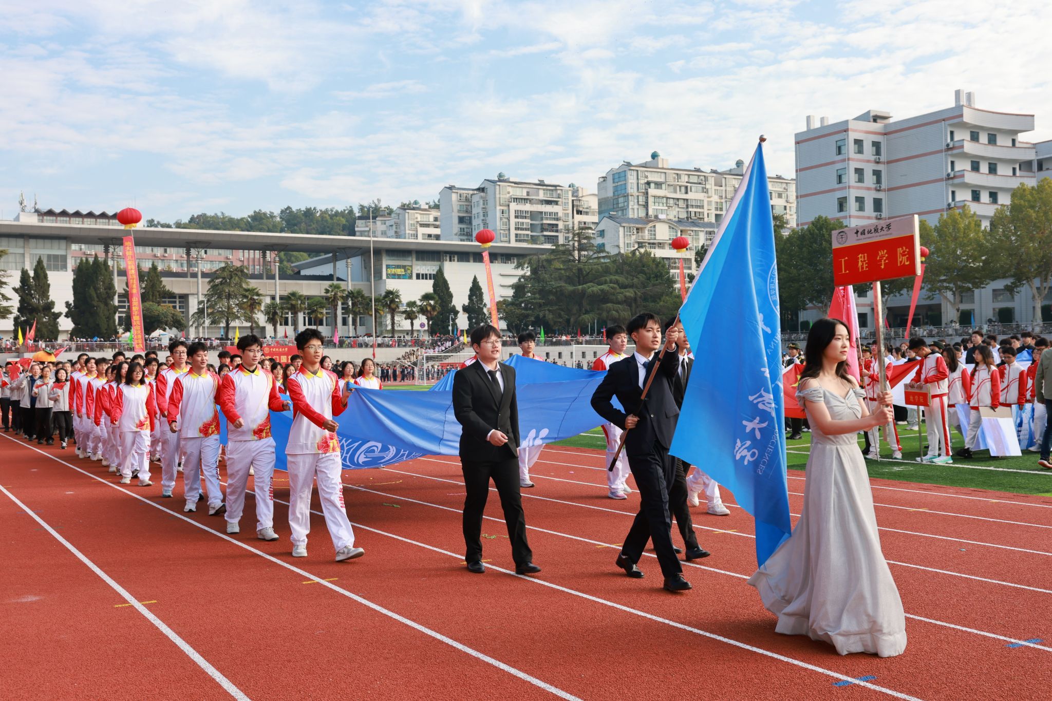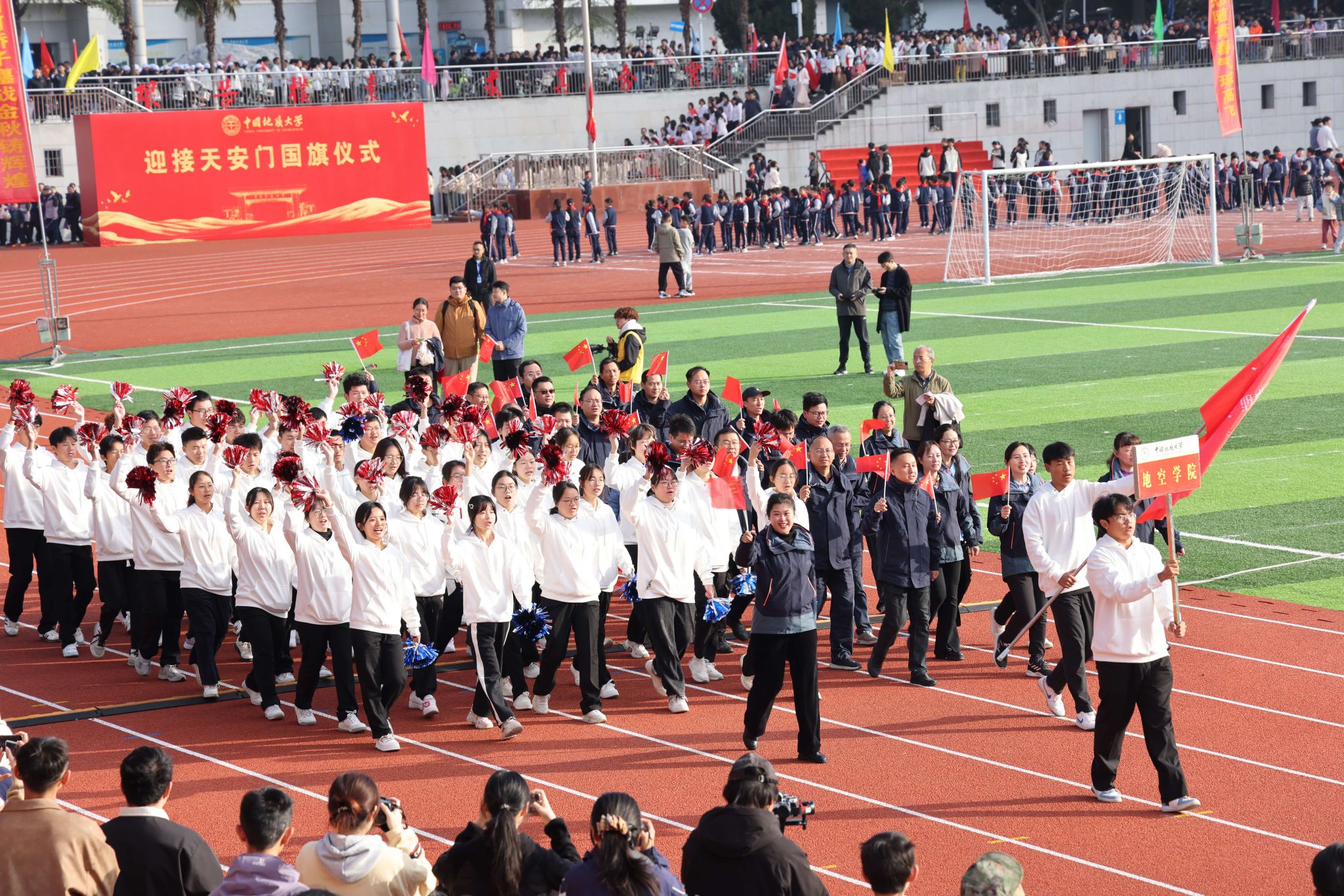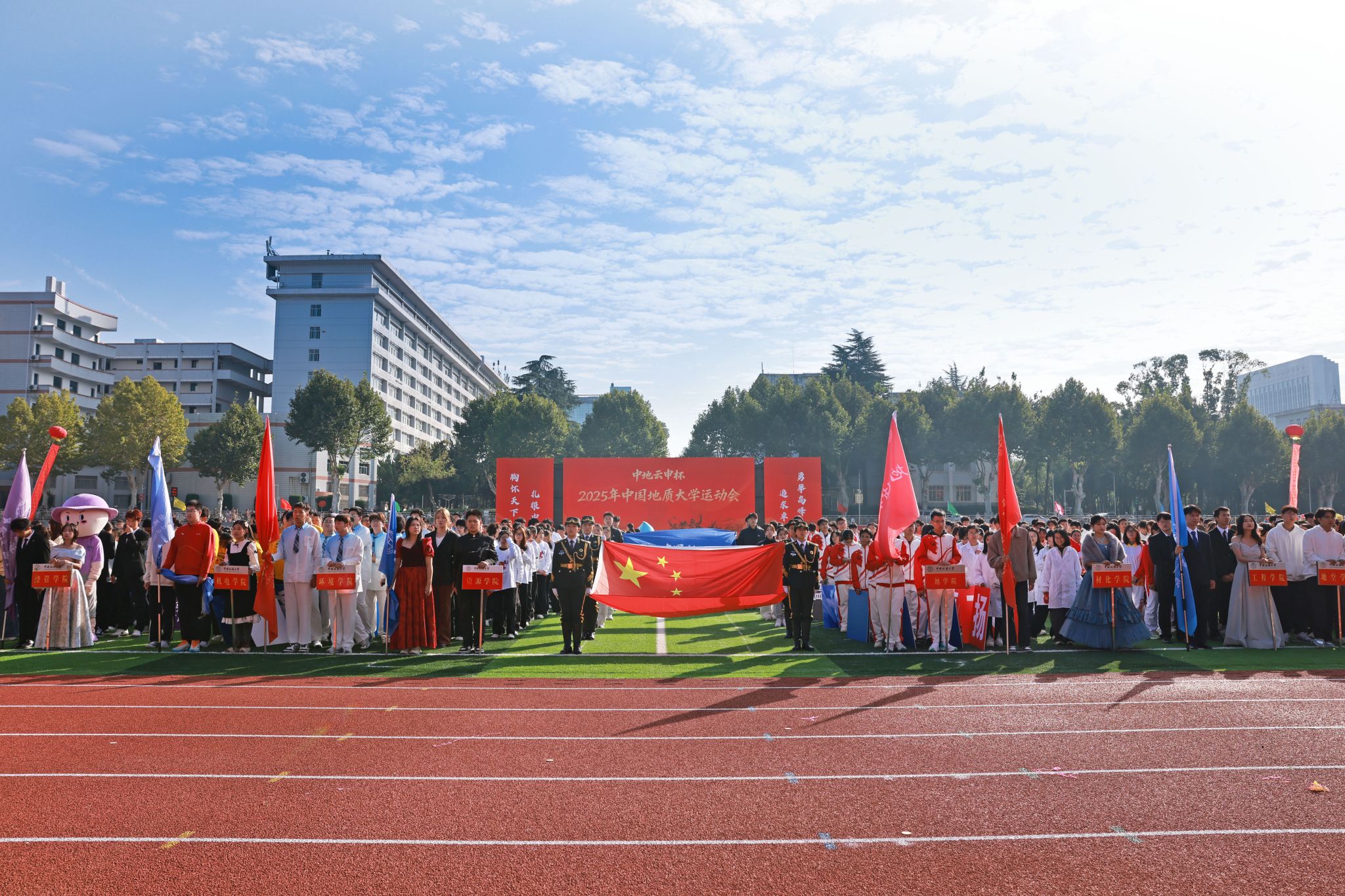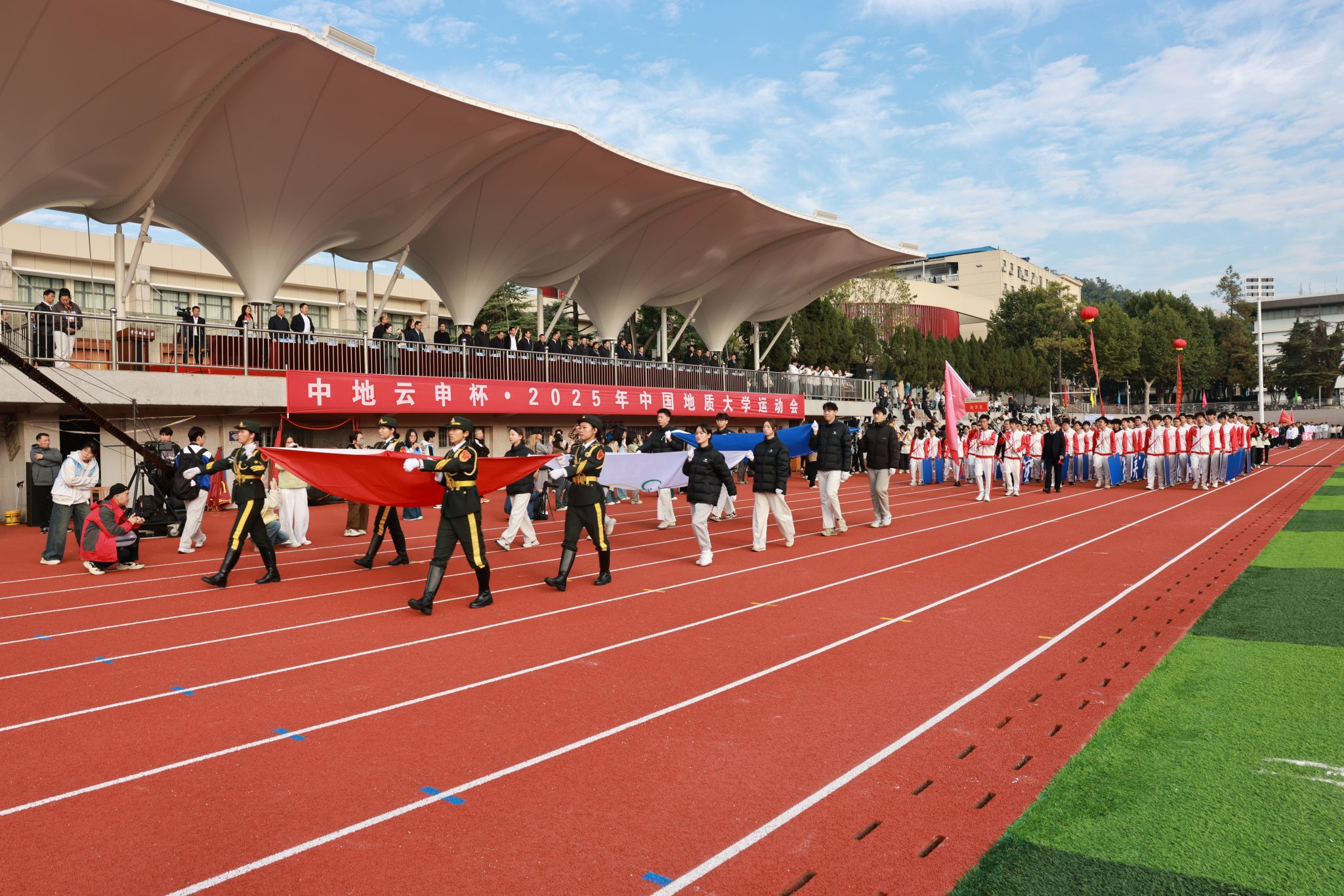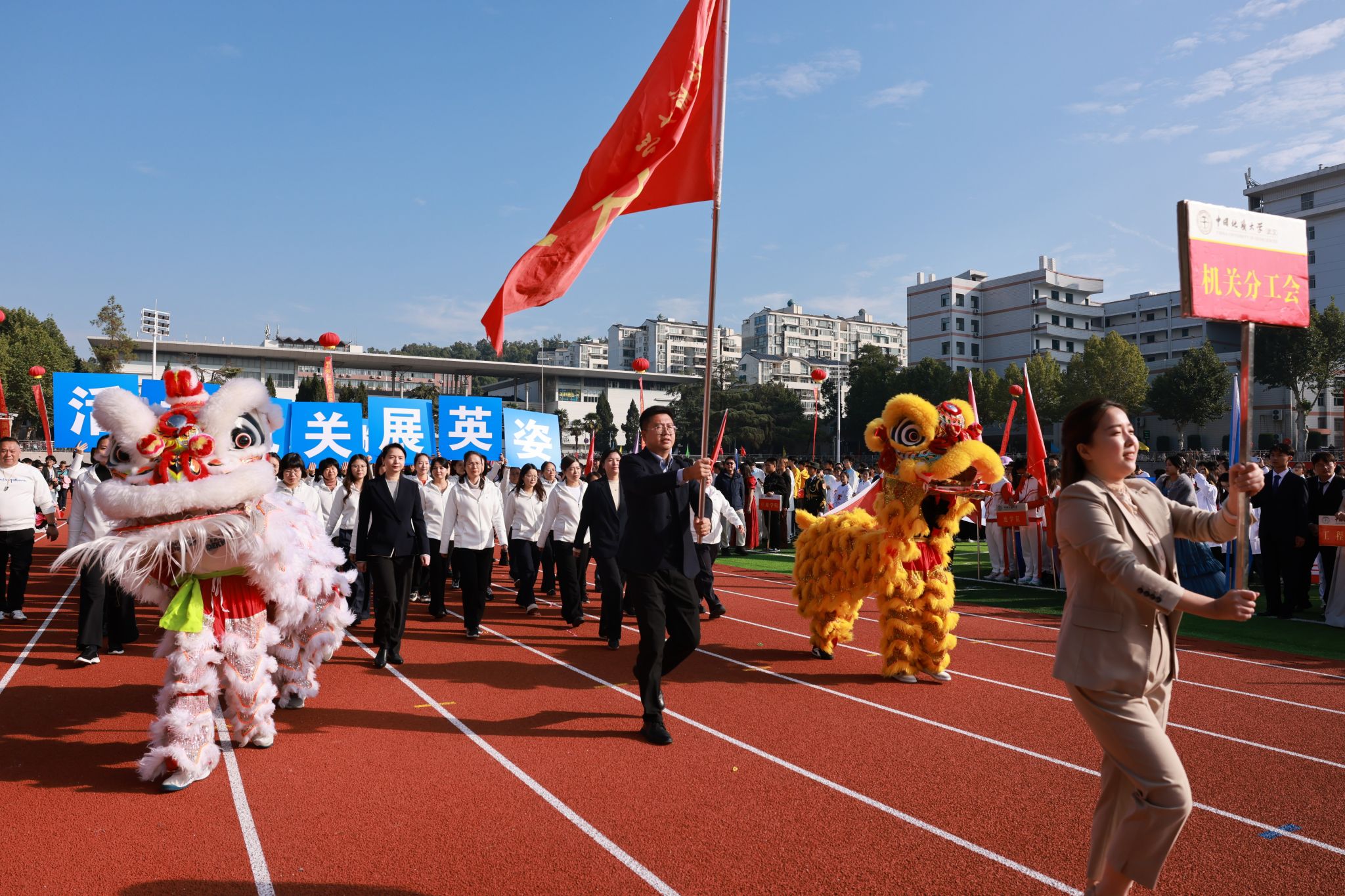 地大新闻网讯 青春飞扬,激情绽放,运动赛场斗志昂!10月24日,“中地云申杯”2025年米兰milan官方网站运动会在南望山校区西区田径场举行。校领导刘杰、李建威、王林清、唐忠阳、胡守庚、王文起,党委常委、组织部部长陈文武,学校各二级单位负责人及各分工会、各学院代表队及赞助单位武汉中地云申科技有限公司代表参加开幕式。