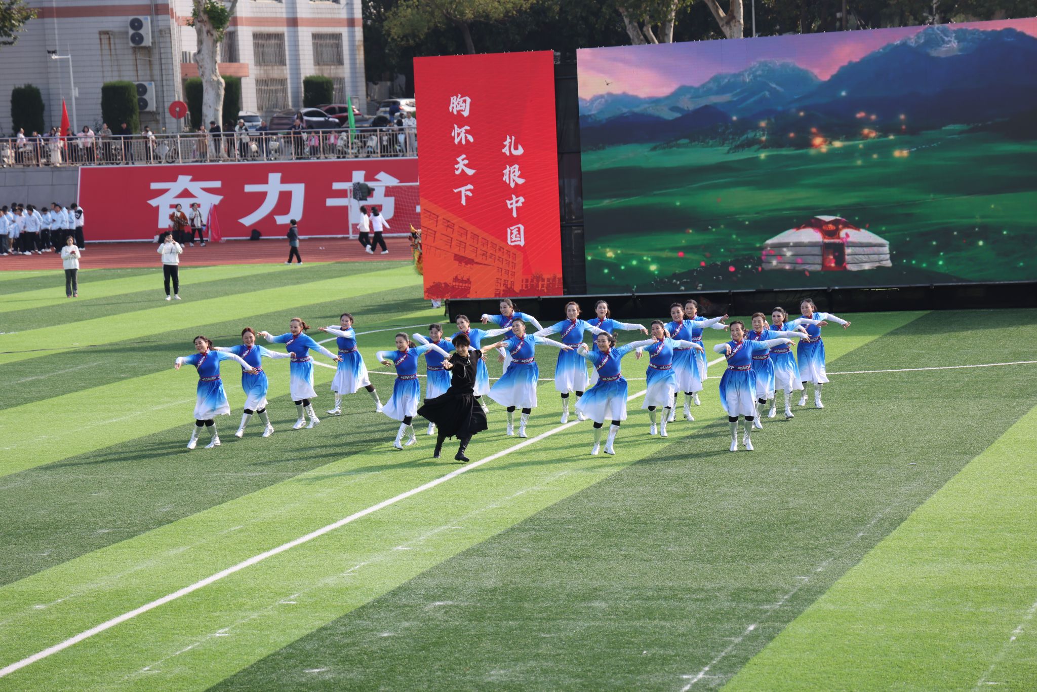 离退休工作处舞蹈队带来蒙古舞《蓝色的风》,舞姿舒展豪迈,步伐轻快从容,于翻飞律动中尽显岁月沉淀的从容气度与不老热忱,展现了师者的别样风采,为运动会增添了动人的温情篇章。