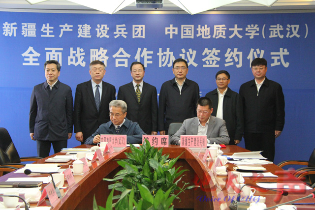 (地大之声通讯员魏海勇 张祎)5月3日至7日,校党委书记何光彩、校长王焰新、校党委副书记傅安洲一行赴新疆生产建设兵团(以下简称“兵团”)签署全面战略合作协议。未来五年,双方将在平台共建、战略咨询、成果转化、技术转移、人才培养等领域开展全面战略合作。
