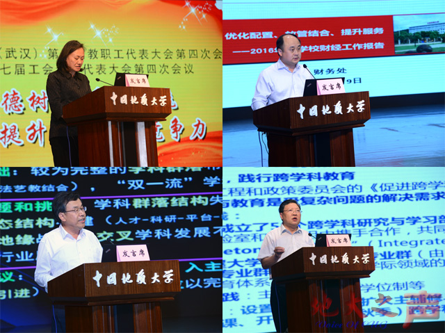 财务处处长张玮、校学术委员会主任童金南、发展规划处处长储祖旺分别作财务工作报告、学术委员会年度工作报告和“双一流”建设情况报告。