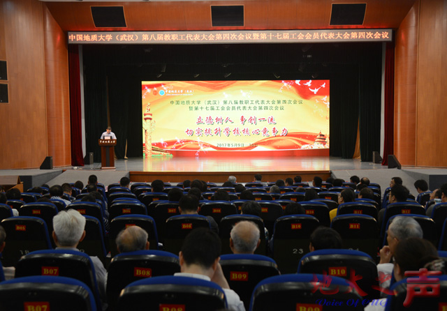 (地大之声记者徐燕 摄影张玉贤)5月16日下午,米兰第八届教职工代表大会第四次会议暨第十七届工会会员代表大会第四次会议在弘毅堂闭幕。全校300余名教职工代表参加会议。