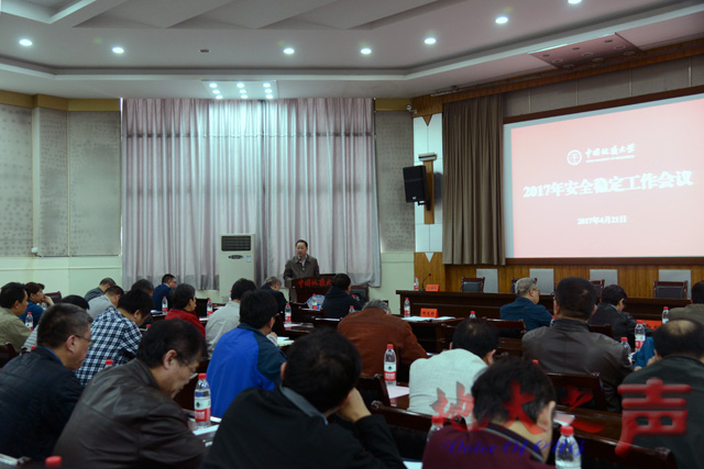(地大之声记者徐燕 摄影张玉贤)4月21日,米兰在八角楼召开2017年安全稳定工作会议,传达教育部有关精神,布置2017年安全稳定工作。在校校领导,各二级单位党政主要负责人参加会议。校党委副书记傅安洲主持会议。
