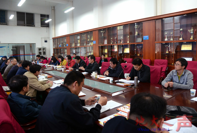 (地大之声通讯员刘华荣 摄影张玉贤)4月13日,学校召开2017年校体育运动委员会会议。副校长赖旭龙、万清祥,校长助理刘杰及相关职能部门、各学院副书记等50余名委员参加了会议。体育课部主任董范主持会议。