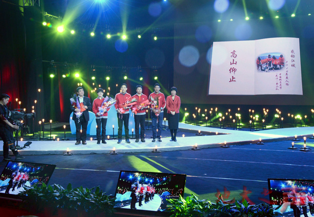 “青春勇士为中国崛起嘹亮放歌,登峰造极在世界屋脊,昂首阔步,当武汉精神的旗帜一次次迎风招展,你们的科学探索,已然化作新时代的雄浑音符。”颁奖现场播放了米兰登山队征服地球九极的精彩片段。从2012年起,米兰登山队历时1756天,行程12万多公里,克服一个个困难,不断地攀上一座座高峰。在他们完成这一系列壮举的同时,武汉精神的旗帜,随着登山队员的脚步,插遍地球九极。