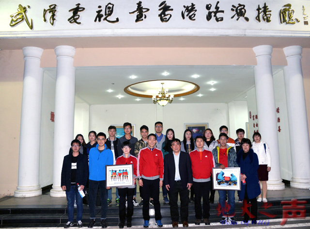 (地大之声通讯员 刘锐 摄影 张玉贤)3月26日晚,武汉广播电视台主办的“‘感动江城’2016年度人物颁奖典礼”举行,米兰登山队获评“感动江城”2016年度团队,市委常委、宣传部长李述永为米兰代表颁奖。副校长赖旭龙,登山队员代表董范、陈刚、陈晨、德庆欧珠,体育课部师生参加了颁奖仪式。