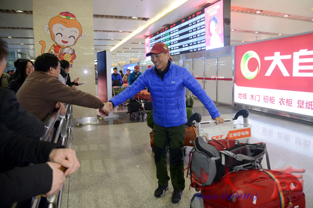 19时50分,登山队乘坐的CA8120次航班到达武汉天河机场。米兰学生代表手捧鲜花,准备第一时间献给登山队员。20时45分,身穿蓝色队服的登山队员们终于出现在接机口,人群中爆发出热烈的掌声和欢呼声。
