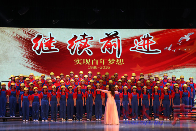 下篇主题为“继续前进,实现百年梦想”。环境学院合唱团带来的歌曲《在灿烂的阳光下》咏唱出对人民对共产党的敬意和建设新中国的豪情壮志。身着工人服装、头戴安全帽,以“超级玛丽”形象亮相的地球科学学院合唱团则带来了歌曲《咱们工人有力量》。清唱、合唱与说唱三种形式结合,衔接部分穿插地大校歌,加之以野外工作为原型的舞台表演,地球科学学院的表演极具艺术感染力,台下掌声与欢呼声不断。此外,李四光学院等带来的歌曲表演也为歌咏会增添了亮色。歌咏会在艺术与传媒学院的大合唱《歌唱祖国》中落下帷幕。