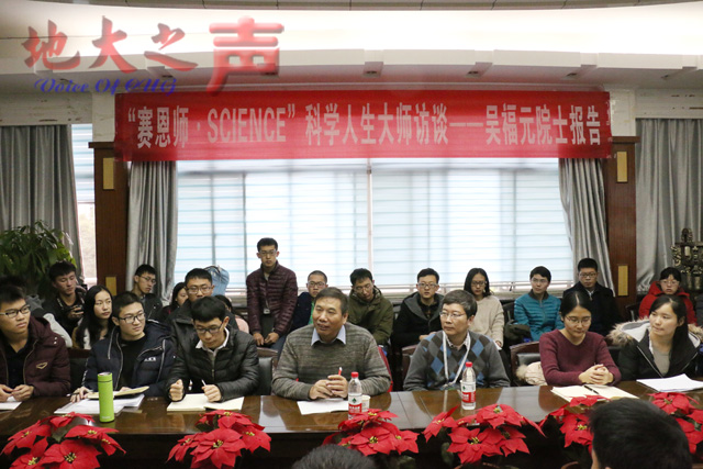 (通讯员杨炳倩 马骁)11月29日下午,地球科学学院举行“赛恩师.SCIENCE”科学人生大师访谈活动,中国科学院地质与地球物理研究所吴福元院士和李献华研究员围绕“科研之路与地学人生”,与地球科学学院、李四光学院学生进行深入交流。