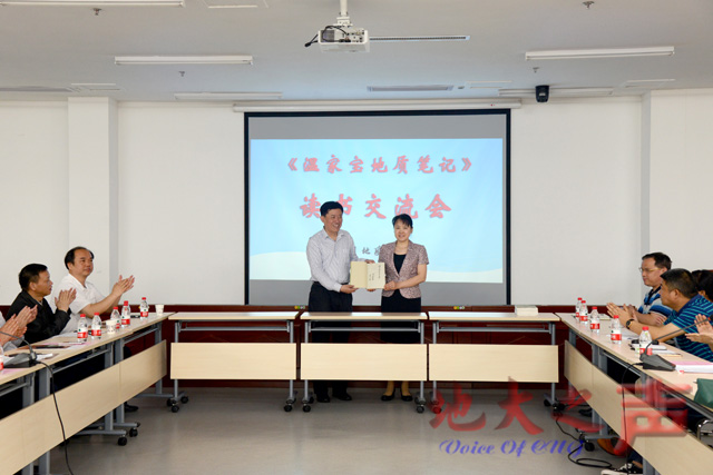 唐京春向学校赠送温家宝同志亲笔签名的《温家宝地质笔记》一本,并介绍了《温家宝地质笔记》编辑出版情况。