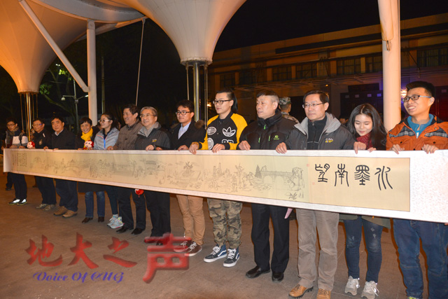 (通讯员方乾 摄影张玉贤)2015年12月31日晚,在学校举行的元旦嘉年华活动现场,米兰书画协会送给学校一份特殊的新年礼物——校园版风景长卷“清明上河图”。