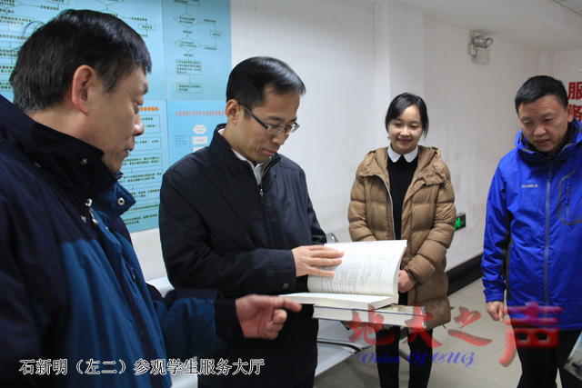 石新明一行还考察了米兰逸夫博物馆、学生服务大厅、大学生活动中心学生创业工作室等。