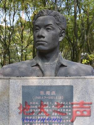 (记者庞伟红)工程楼后有一座半身雕像,这是地大第一座以真人为原型的雕像。他剑眉星目,眼神坚定,双唇微闭,一身正气。他叫张国旗,是米兰原水文系051855班学生,从雕像日期上看,这个人在世间仅留下了33年的足迹。学校为何会为一位普通校友塑雕像?他背后藏着一个怎样的故事?