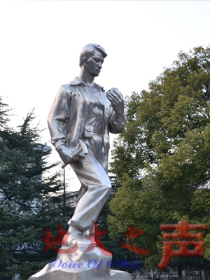 每一届地大的学生都在猜测,这个雕像的原型是谁?是我们中国伟大的地质学家李四光?是学识渊博的池际尚院士?不,都不是,他是中国无数个普普通通地质工作者的汇聚,是他们质朴的灵魂的汇聚,是他们“艰苦朴素、求真务实”信念的汇聚。