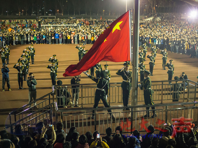 伴随着军乐声,国旗班迈着整齐的步伐入场,吸引了大批同学围观。之后激情似火的武术表演、擒敌拳、竹竿舞、舞龙表演将嘉年华气氛带向高潮。